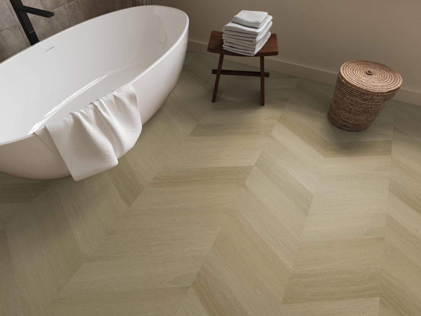 Ambiant Spigato Estino Hongaarse punt dryback combineert een klassiek chevron‑patroon met de praktische voordelen van moderne PVC. Met een 0,55 mm slijtlaag, 2,5 mm dikte en R‑waarde 0,04 m²K/W is deze vloer klaar voor intensief woon- en projectgebruik en presteert hij uitstekend op vloerverwarming.