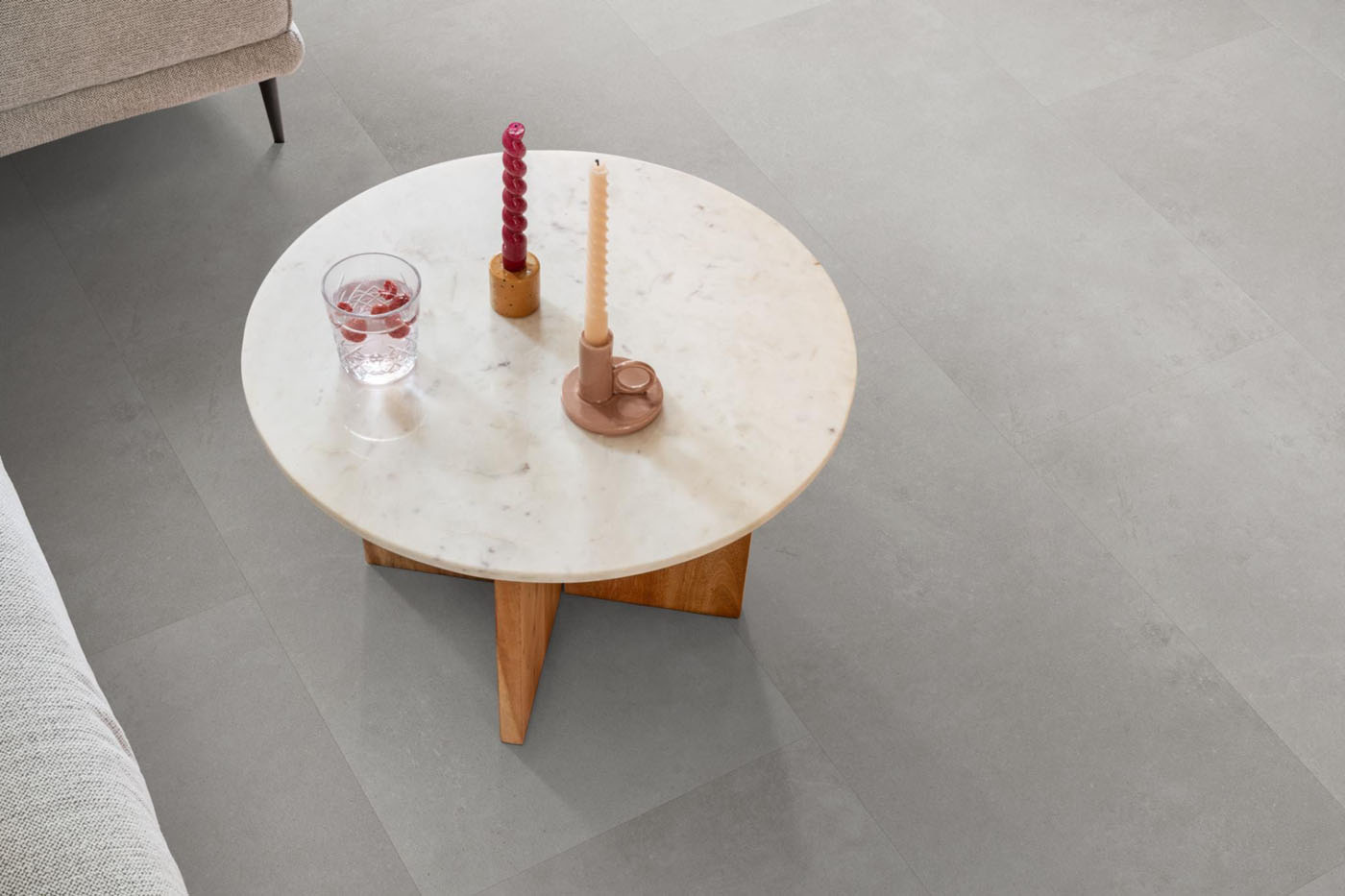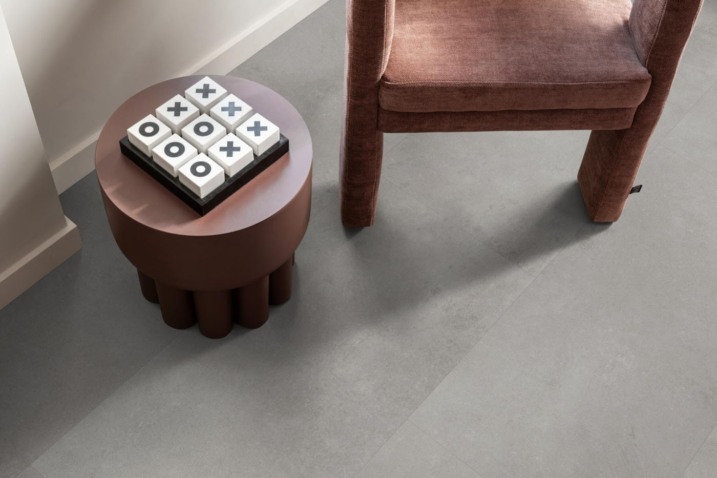 Ambiant Sarino click is een rechthoekige klik‑PVC‑tegel met all‑over betonstructuur. Met een 0,55 mm slijtlaag, 5 mm totale dikte en R‑waarde 0,04 m²K/W is deze vloer geschikt voor intensief woon‑ en projectgebruik en combineert hij uitstekend met vloerverwarming.