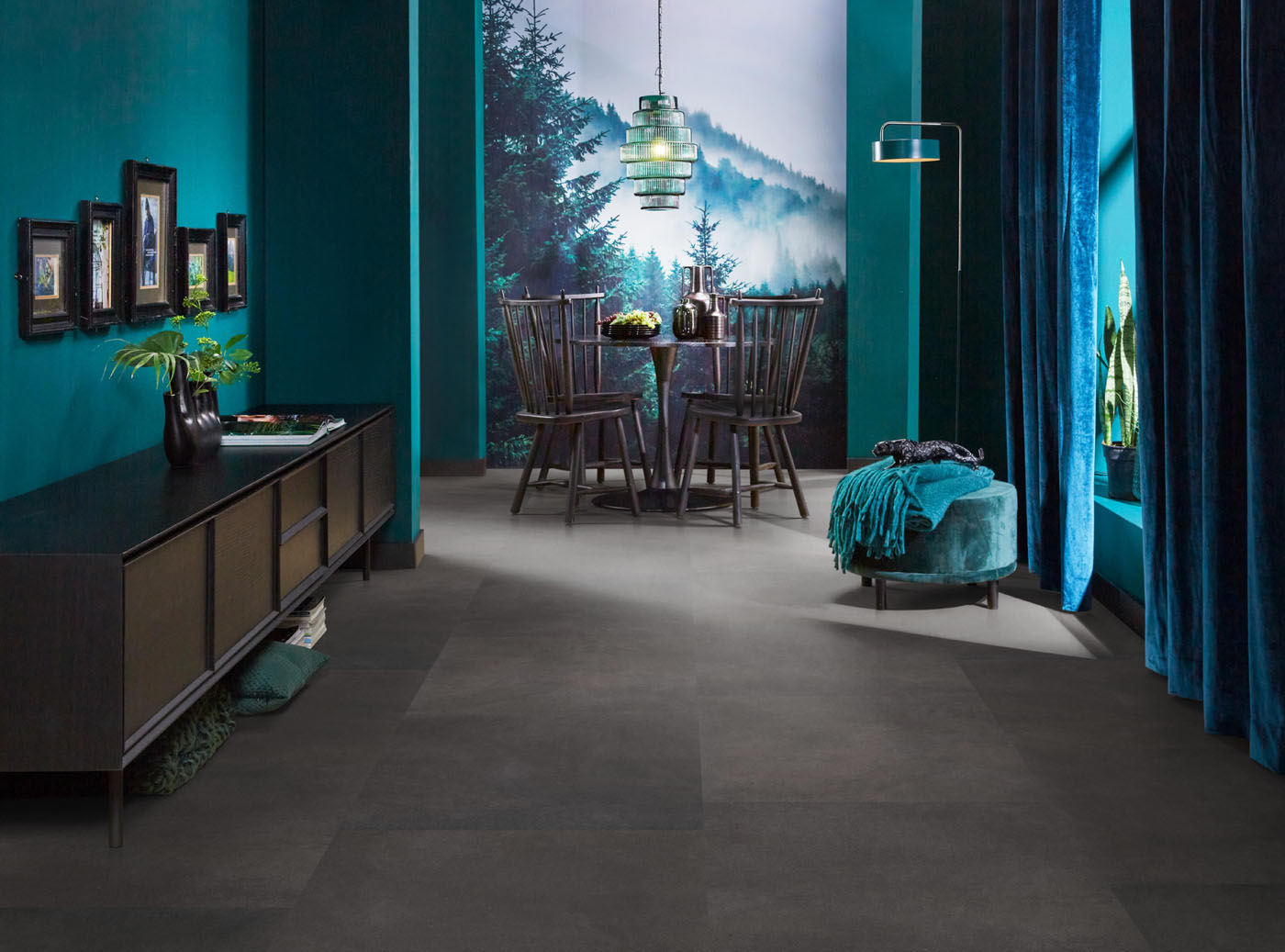 Ambiant Baroso dryback combineert een subtiele betonlook met de duurzaamheid van verlijmde PVC‑tegels. Met een 0,55 mm slijtlaag, 2,5 mm dikte en R‑waarde 0,04 m²K/W is Baroso geschikt voor intensief gebruik en ideaal op vloerverwarming.