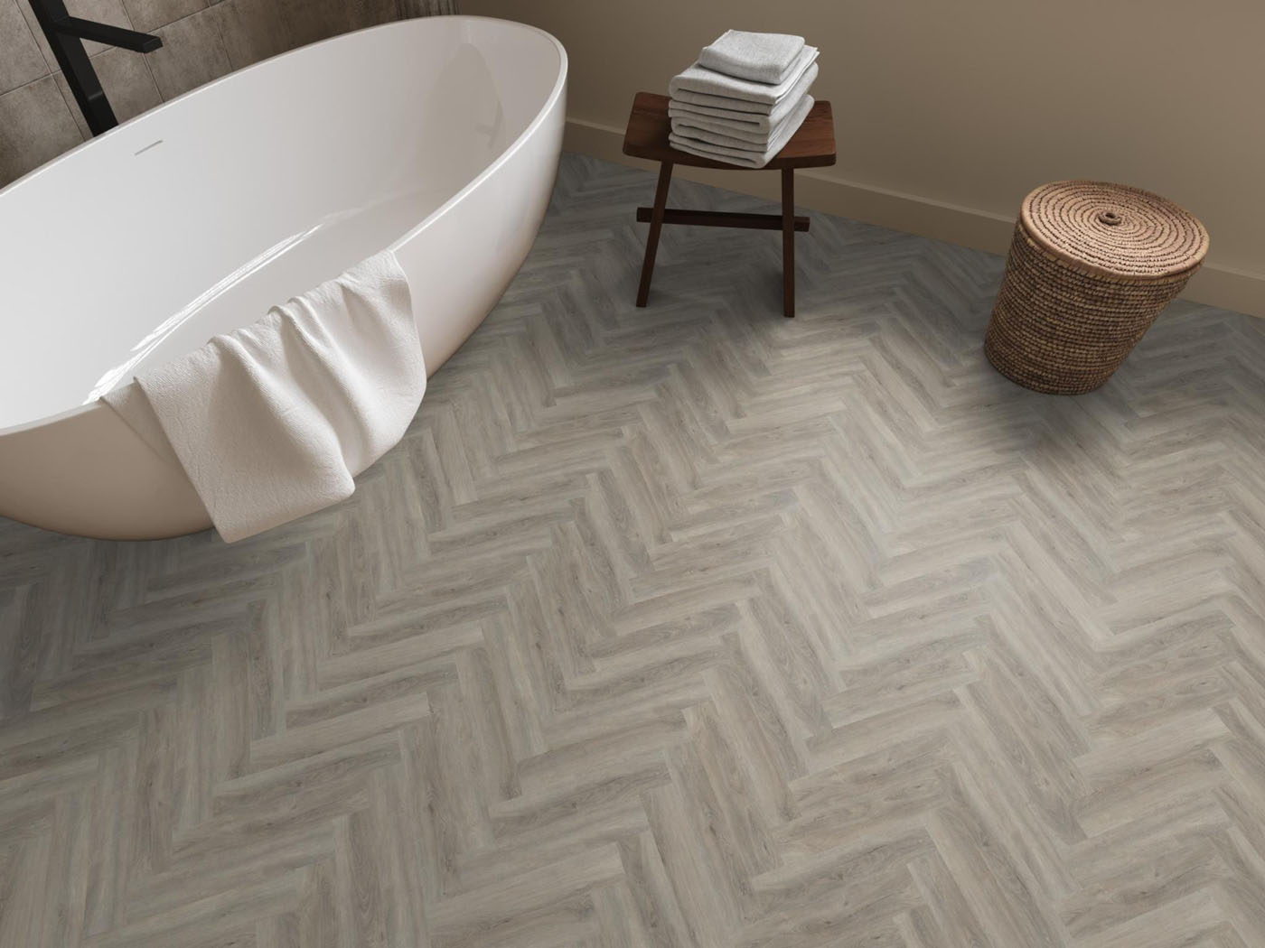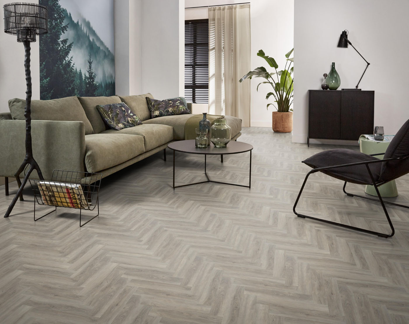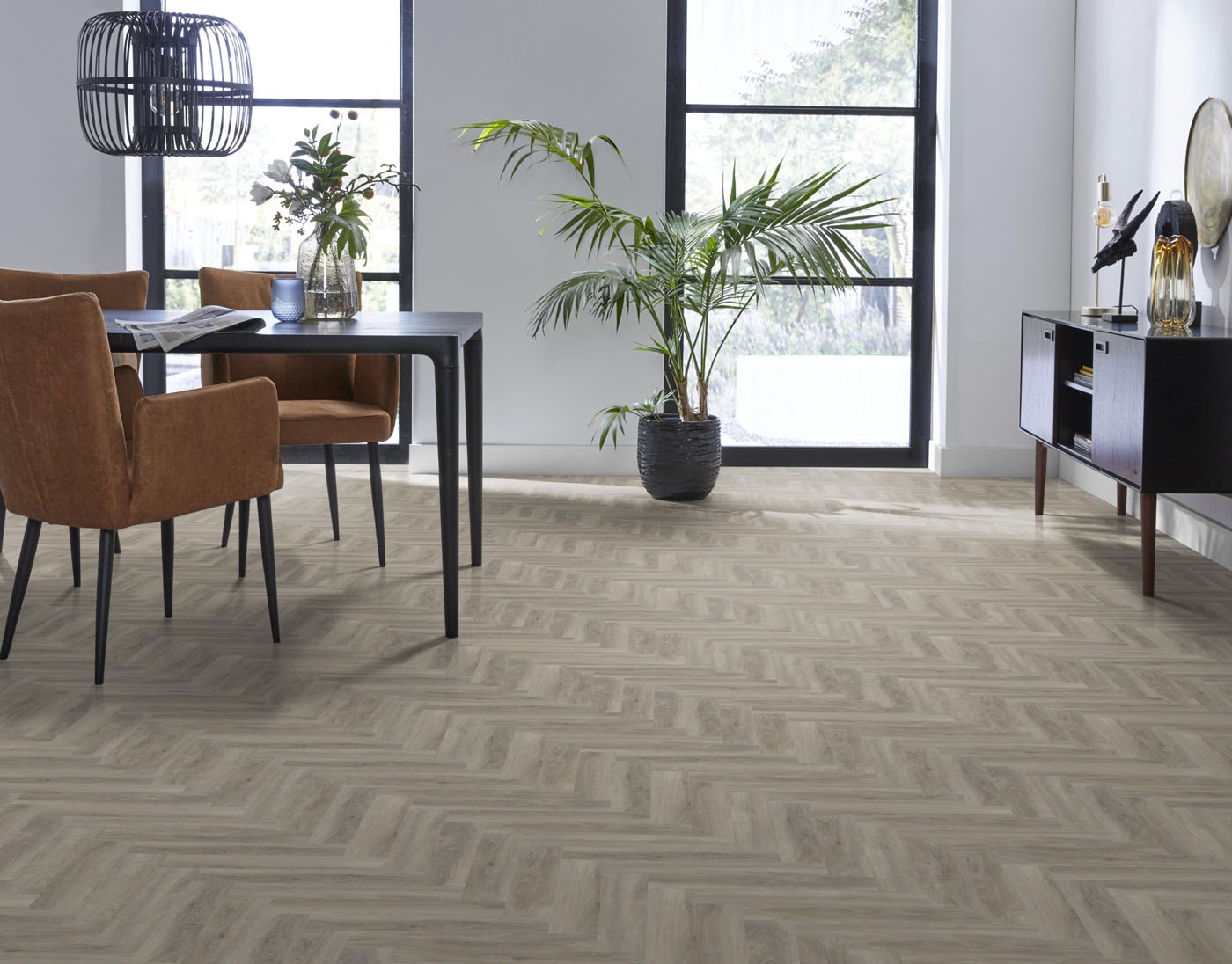 De Spigato Visgraat Dryback collectie van Ambiant brengt de klassieke charme van visgraat tot leven in een moderne uitvoering. Deze plak PVC-vloer is voorzien van een natuurgetrouwe houtstructuur (EIR), 4-zijdige micro V-groeven en een 0,55 mm slijtlaag – ideaal voor intensief gebruik in huis of project.
