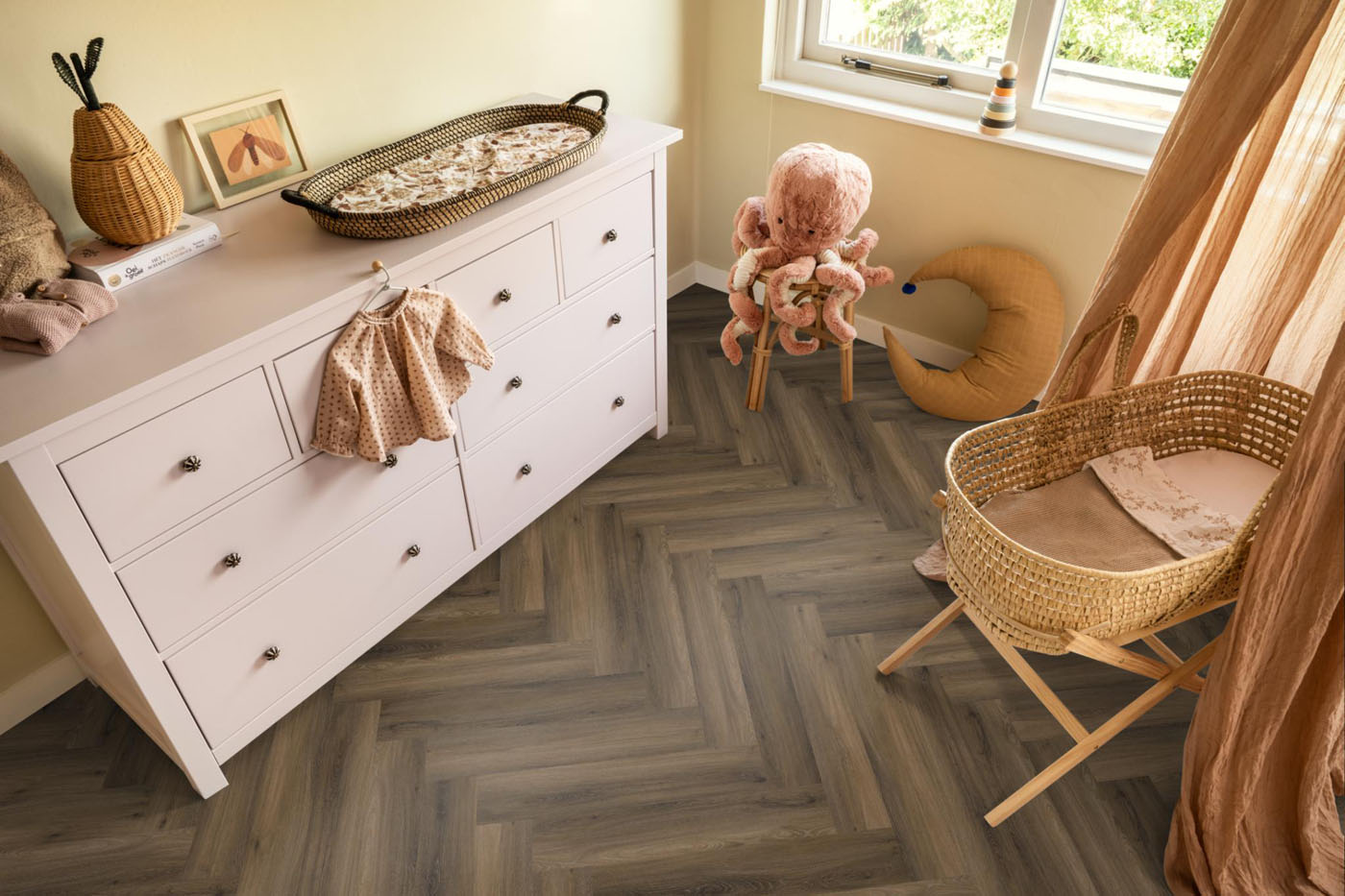De Gigafloor Yup Click is een moderne pvc visgraatvloer met klikverbinding, 10dB geluidsdemping en natuurgetrouwe structuur. Ideaal voor appartementen.