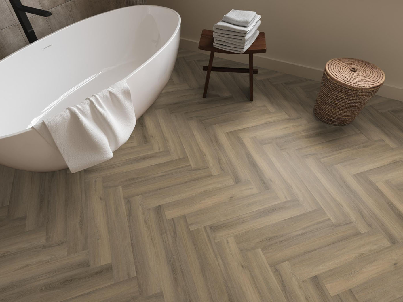 - Elegant visgraatdesign: Compact patroon met natuurlijke houtnerf en matte afwerking.