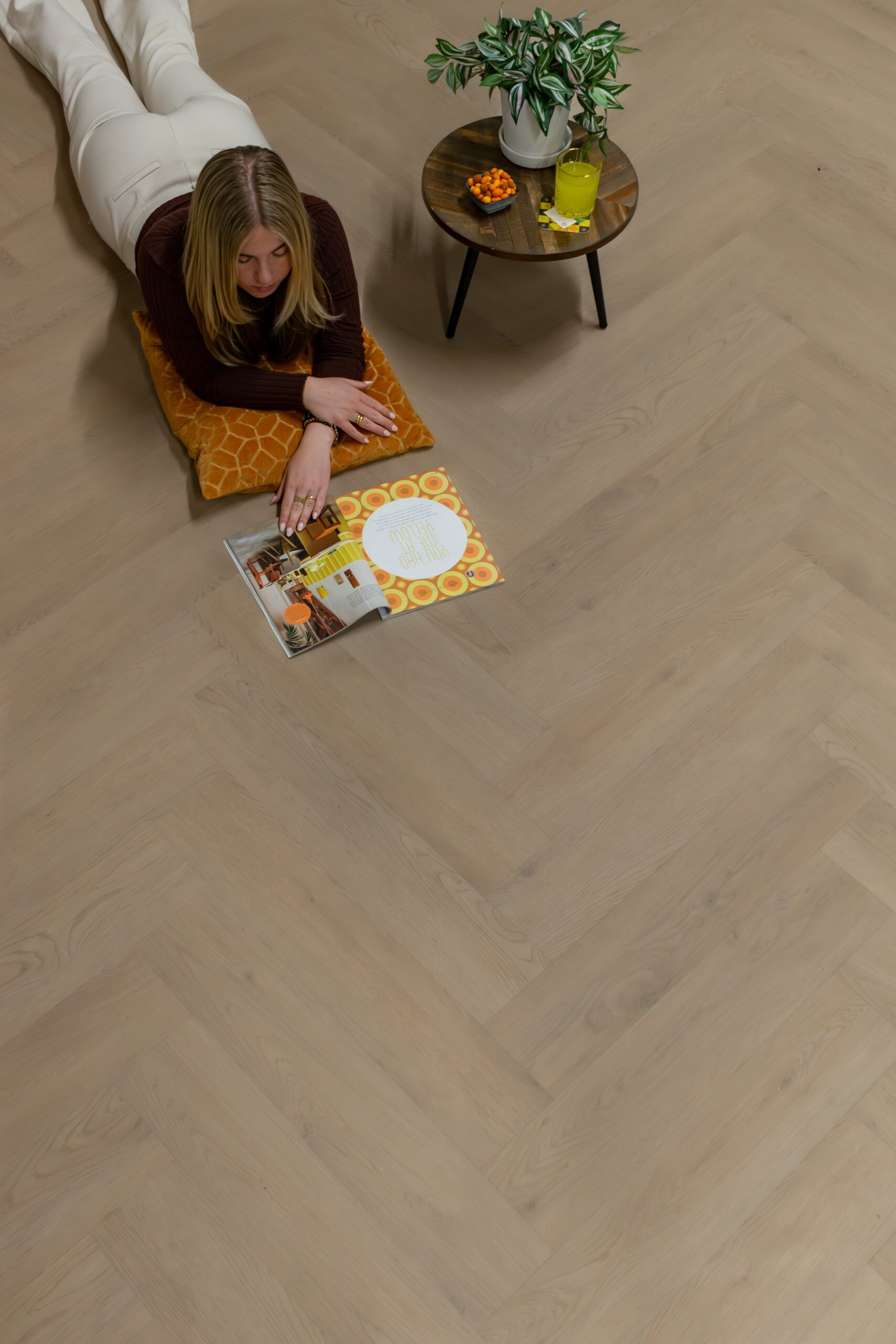 De Mystiq Visgraat plak PVC collectie van Gelasta biedt een extra matte afwerking, realistische houtlook en is geschikt voor intensief gebruik. Perfect voor elk interieur.