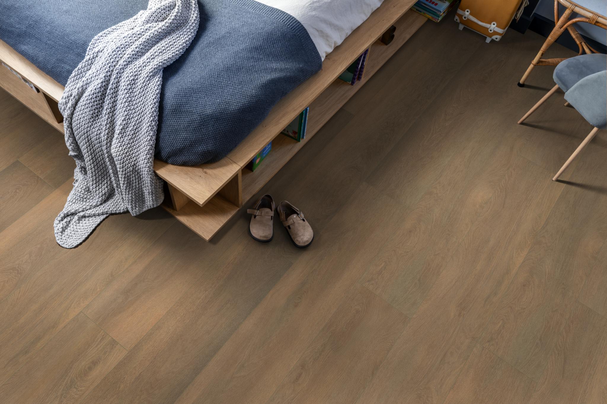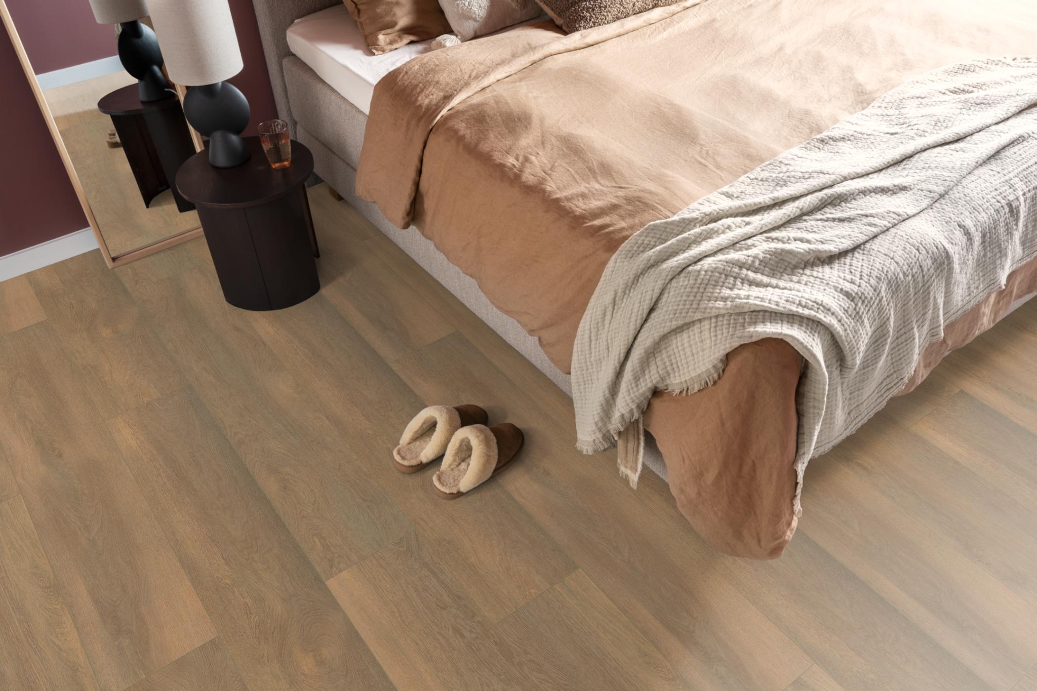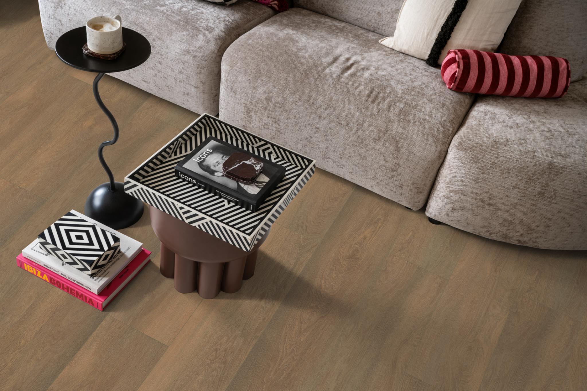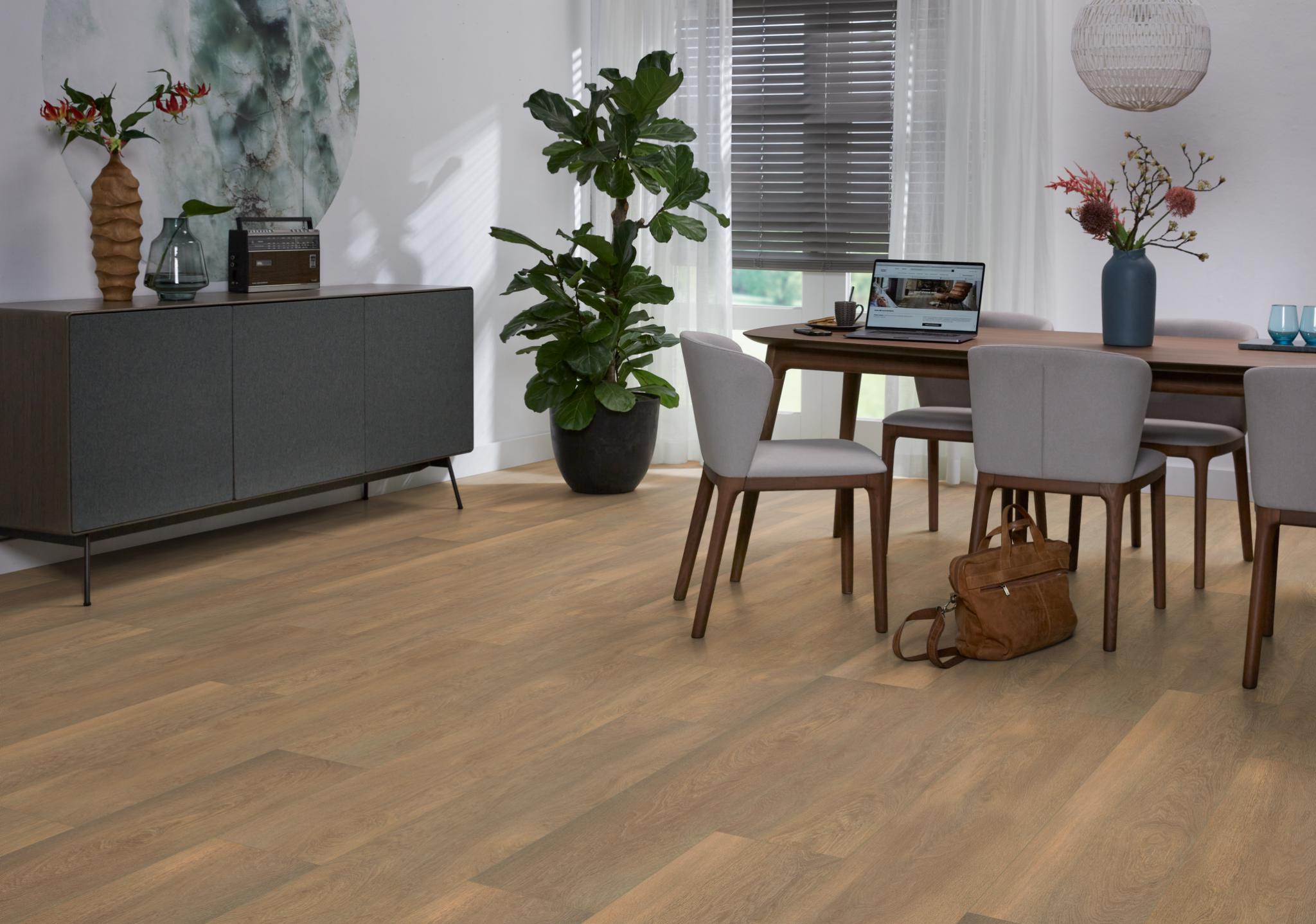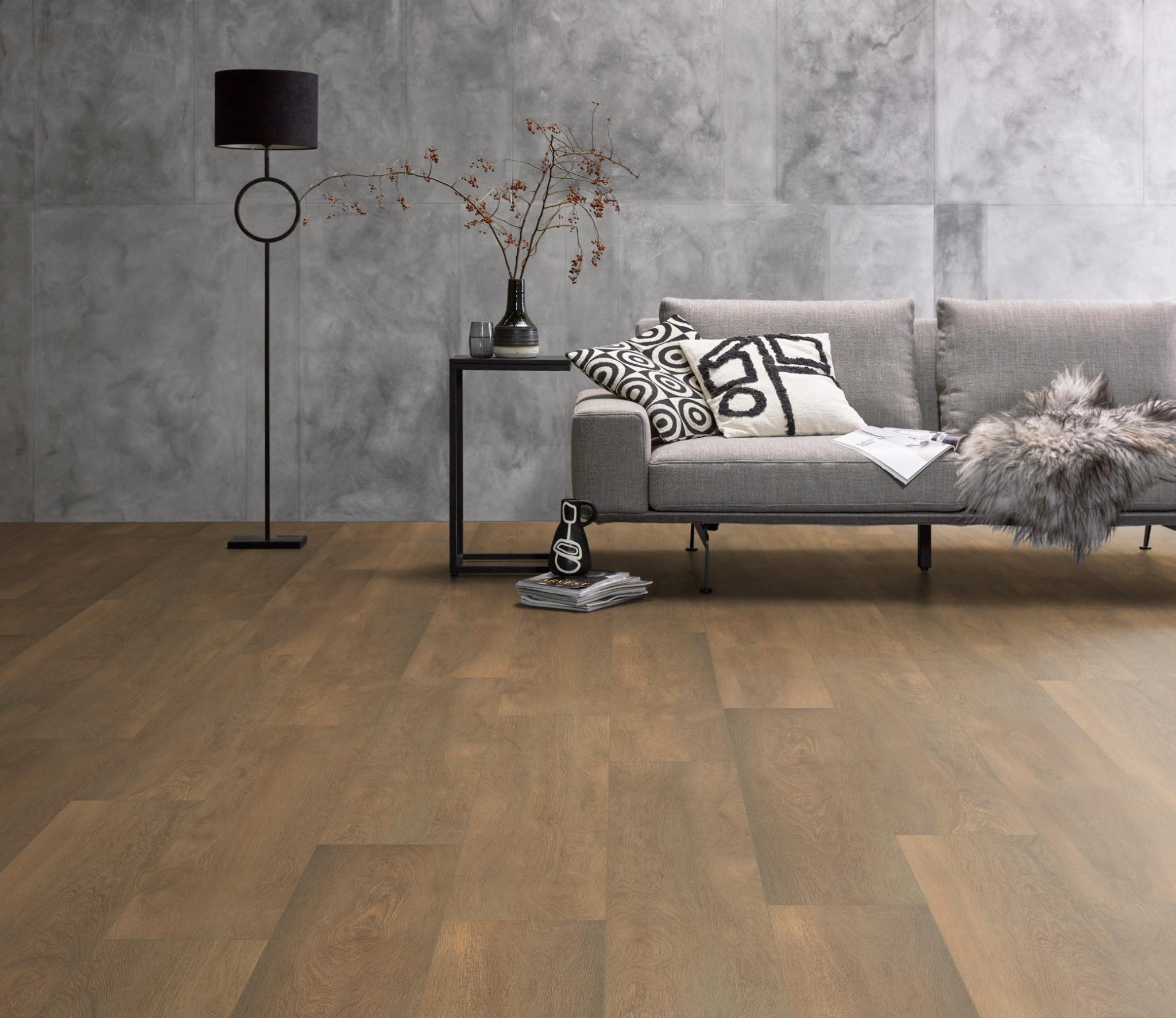 Ambiant Arnstadt is een waterbestendige laminaatvloer met extra brede planken en een natuurgetrouwe structuur. Verkrijgbaar in vier stoere kleuren en geschikt voor vloerverwarming. Perfect voor elk interieur.