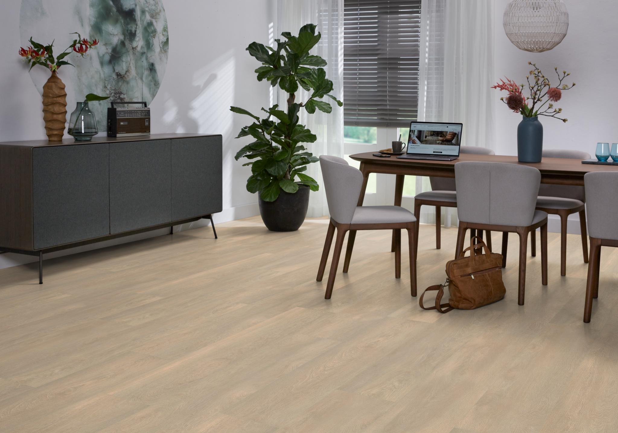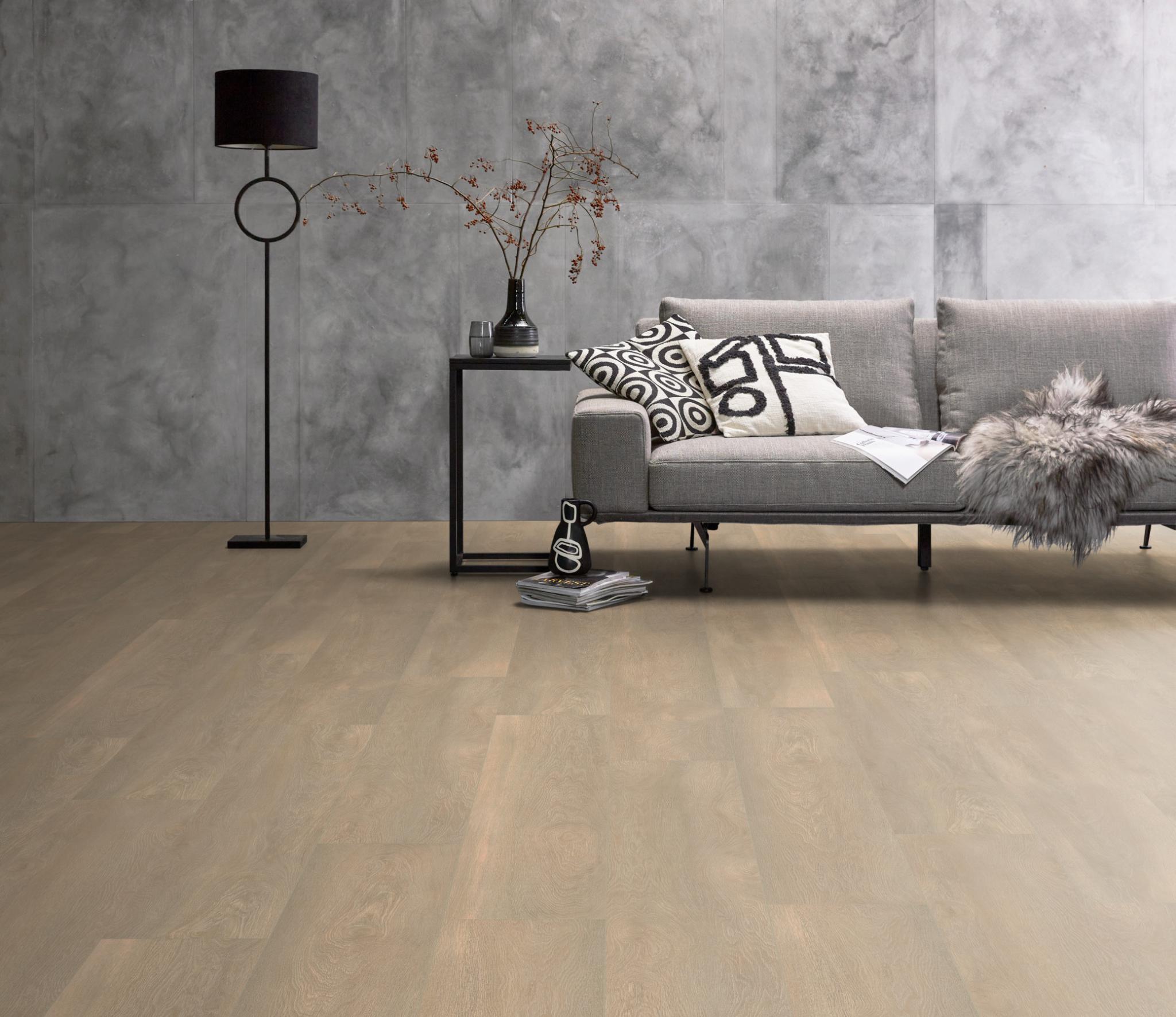 Ambiant Arnstadt is een waterbestendige laminaatvloer met extra brede planken en een natuurgetrouwe structuur. Verkrijgbaar in vier stoere kleuren en geschikt voor vloerverwarming. Perfect voor elk interieur.