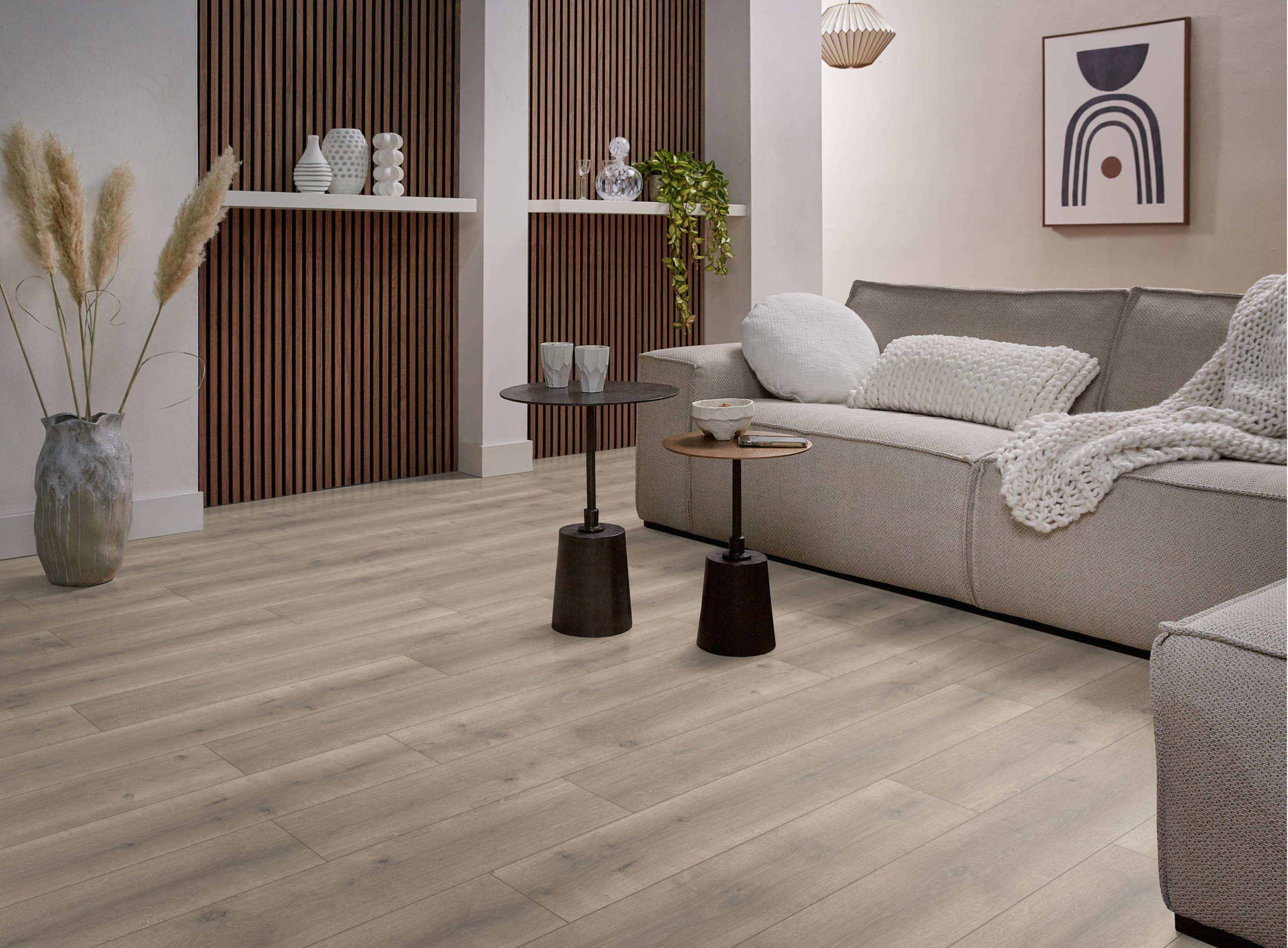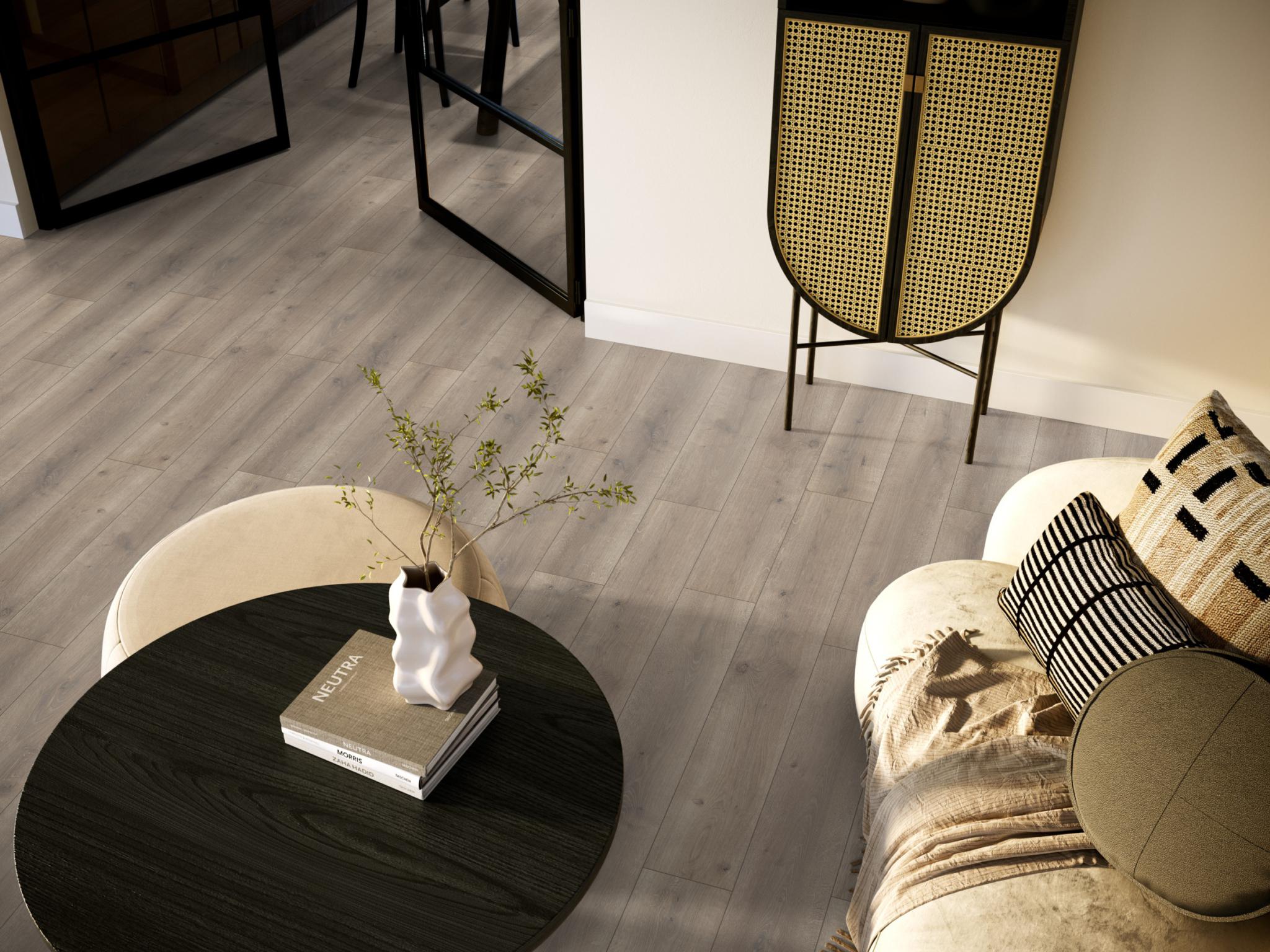 De Ambiant Elite laminaatcollectie brengt met zijn allover-structuur en matte afwerking een moderne, tijdloze uitstraling in elke kamer. Met extra brede planken van 1286 × 194 mm en zes verfijnde eikendecors is er altijd een Elite die perfect aansluit op jouw interieur.