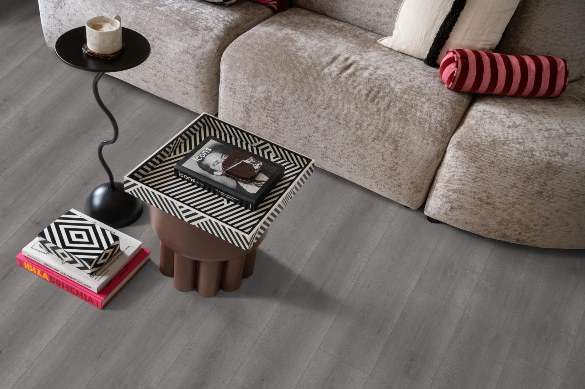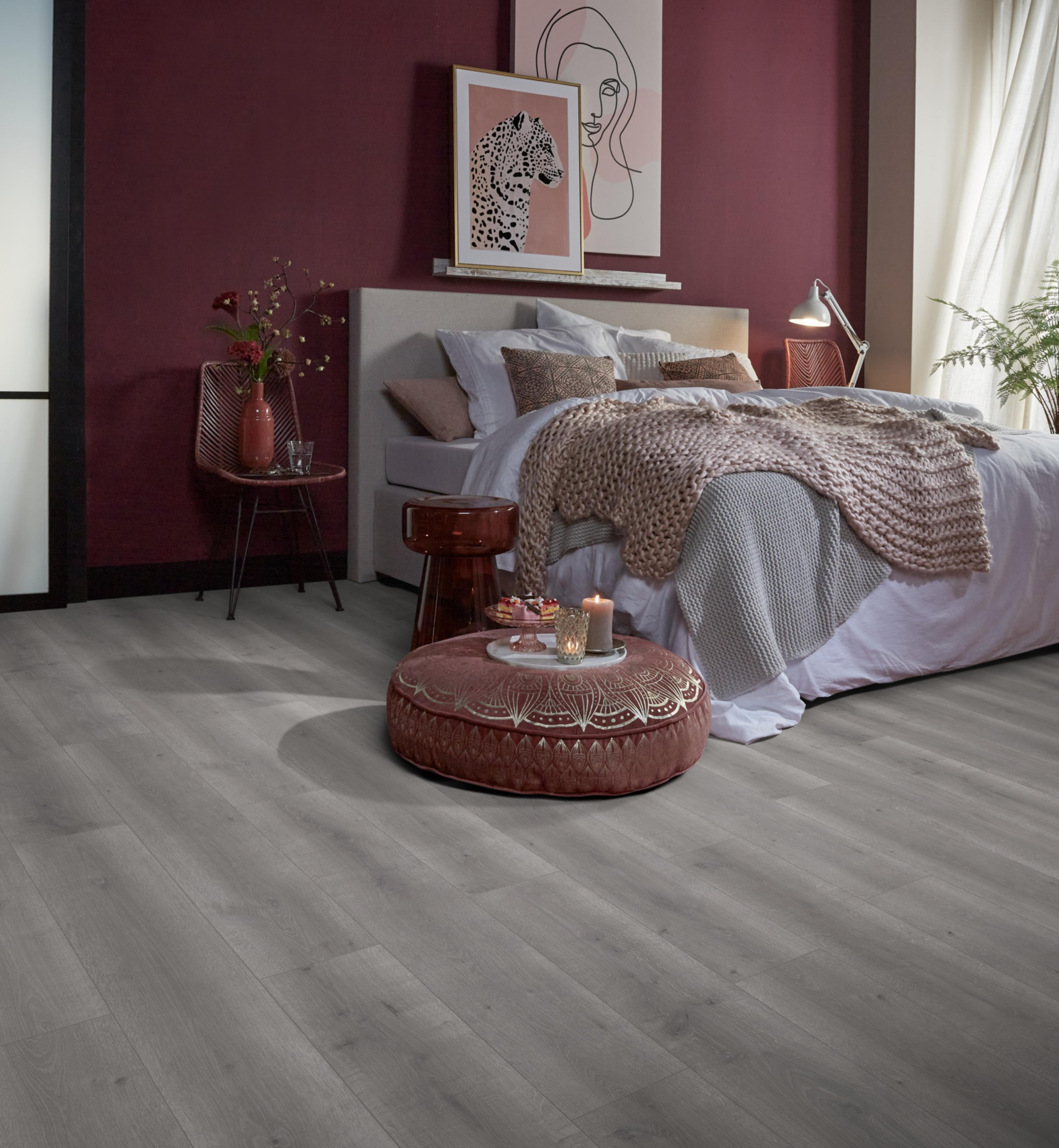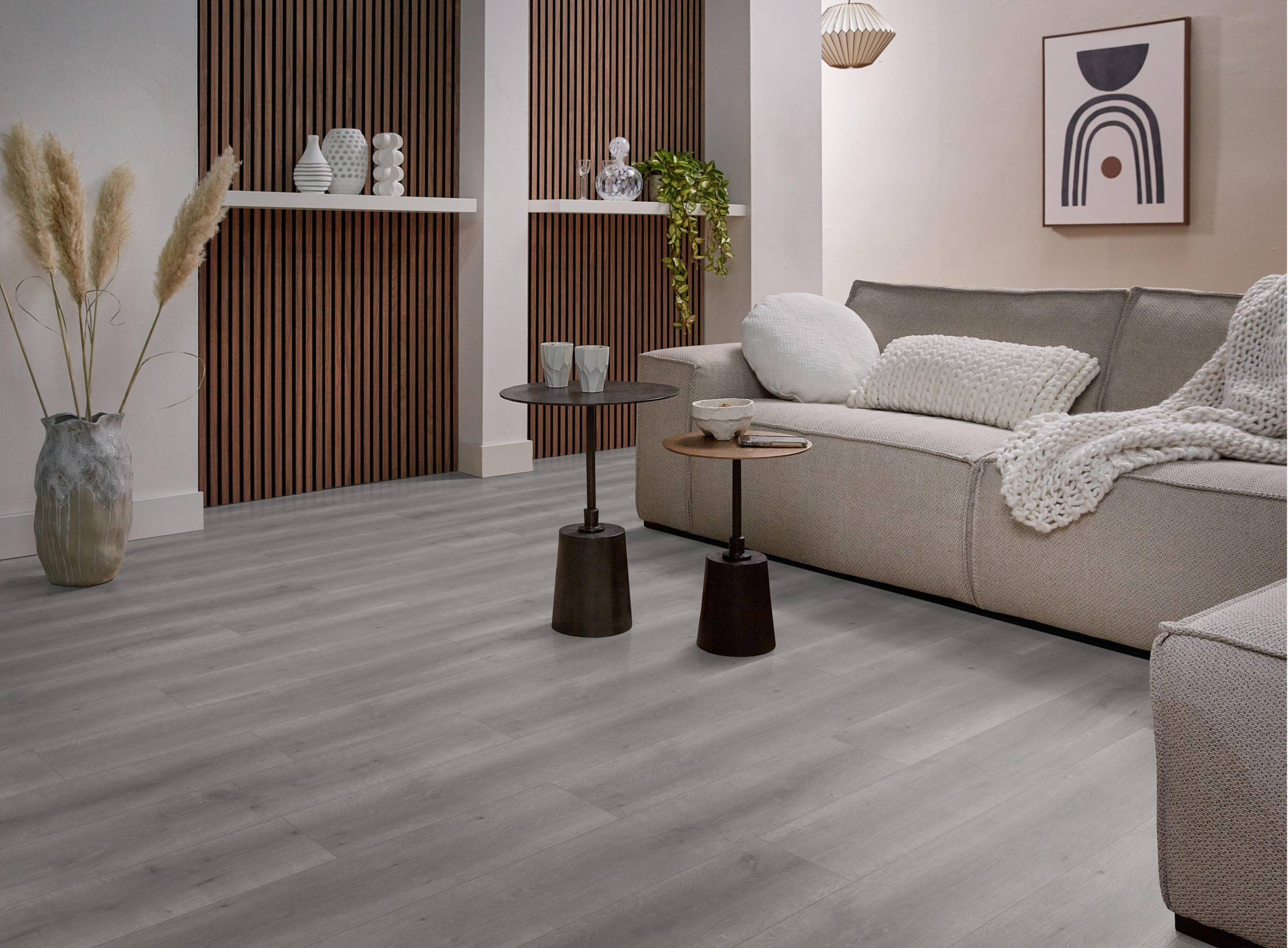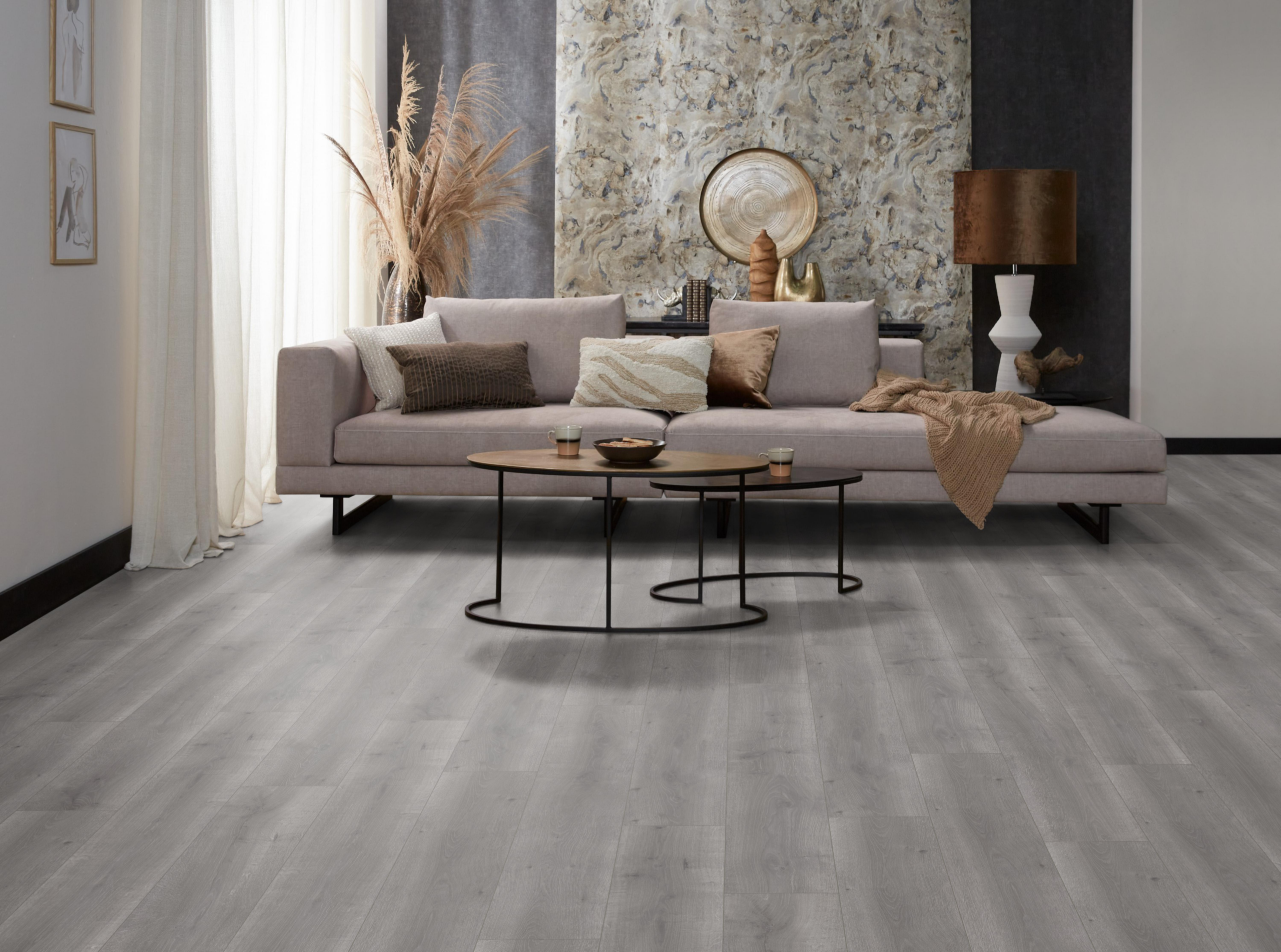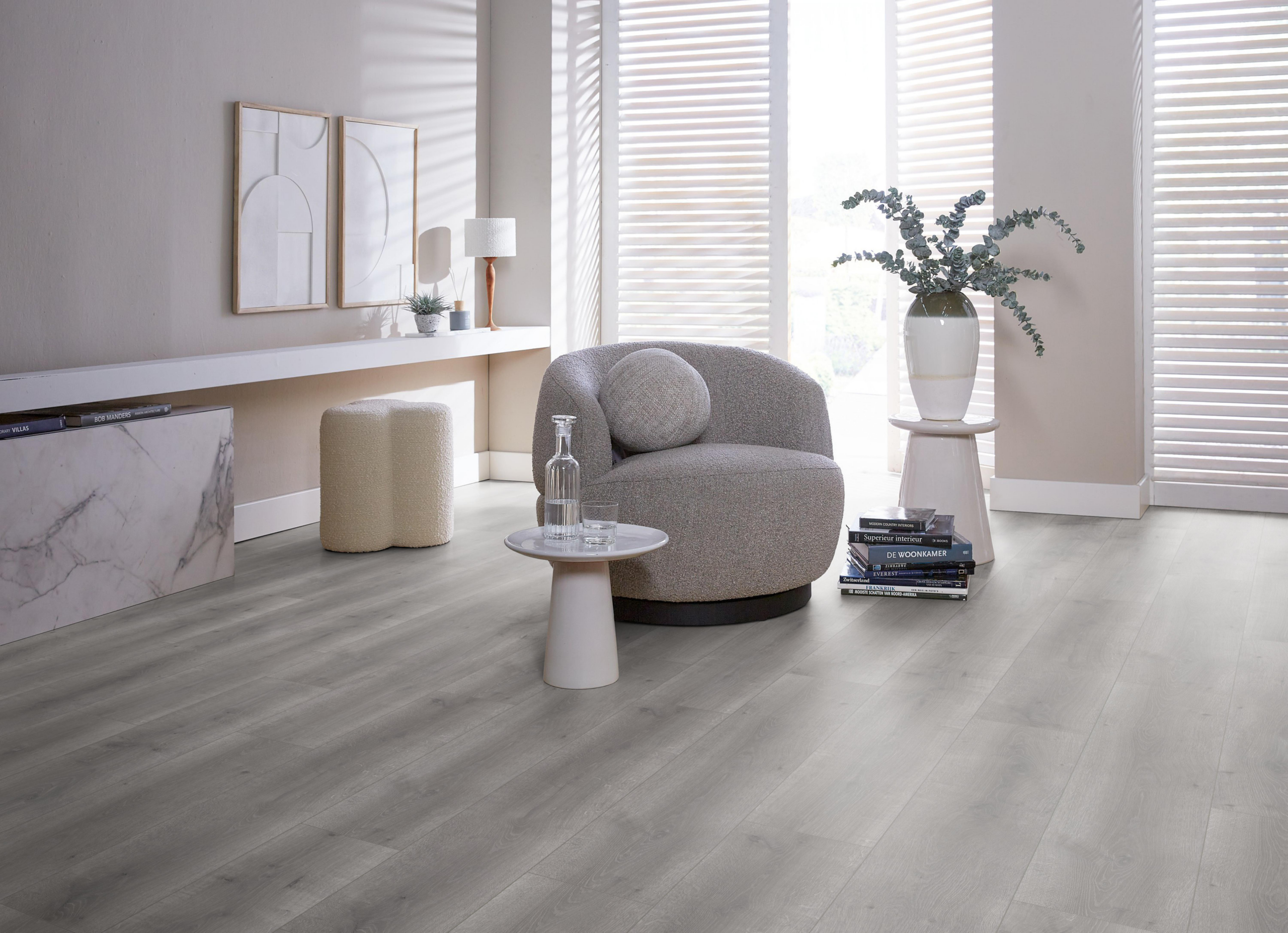 De Ambiant Elite laminaatcollectie brengt met zijn allover-structuur en matte afwerking een moderne, tijdloze uitstraling in elke kamer. Met extra brede planken van 1286 × 194 mm en zes verfijnde eikendecors is er altijd een Elite die perfect aansluit op jouw interieur.