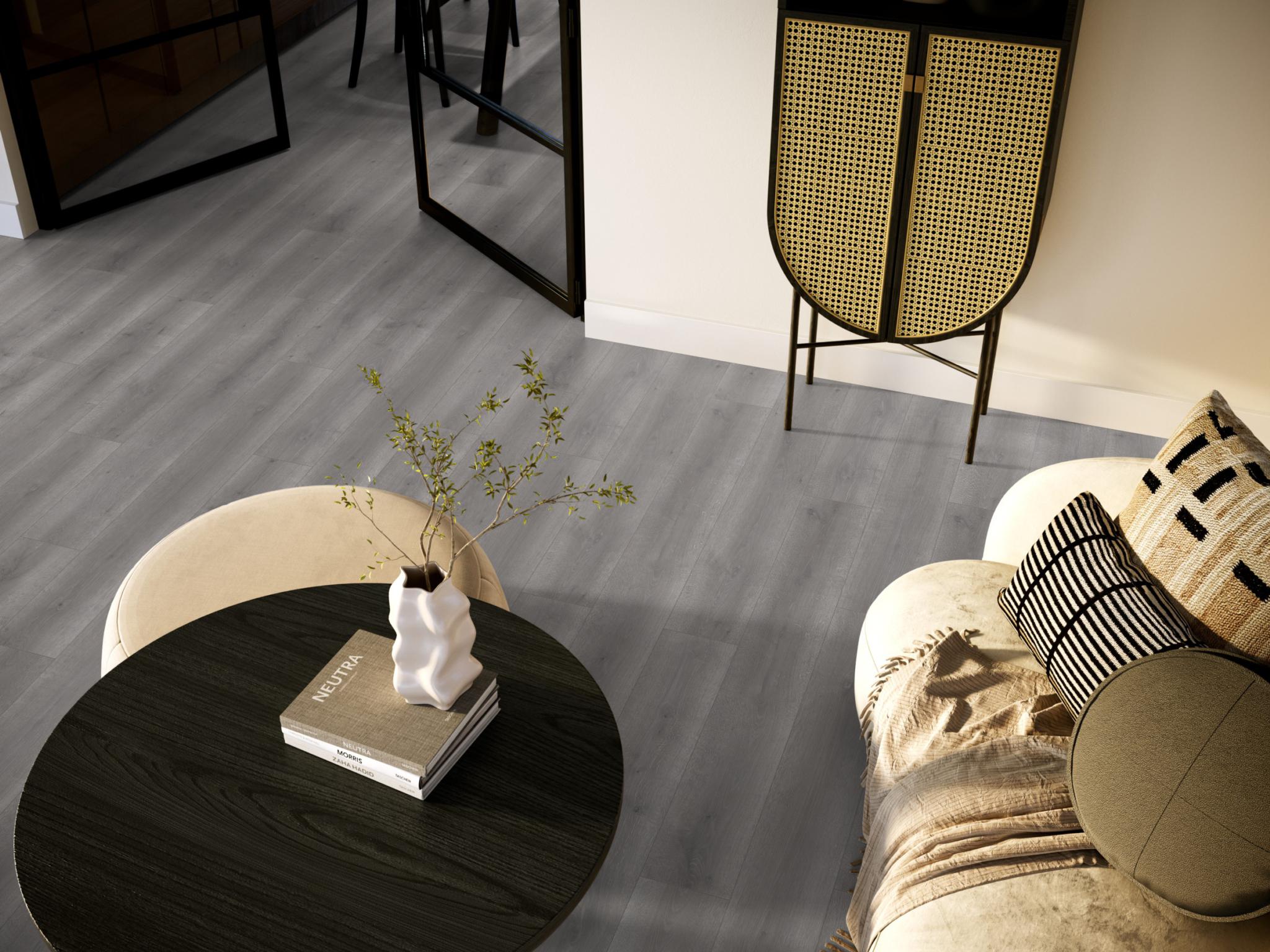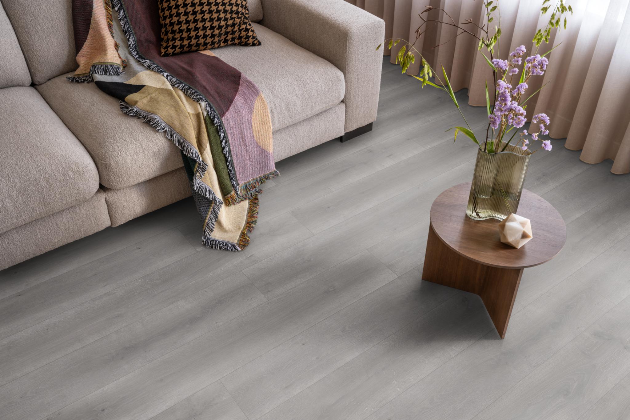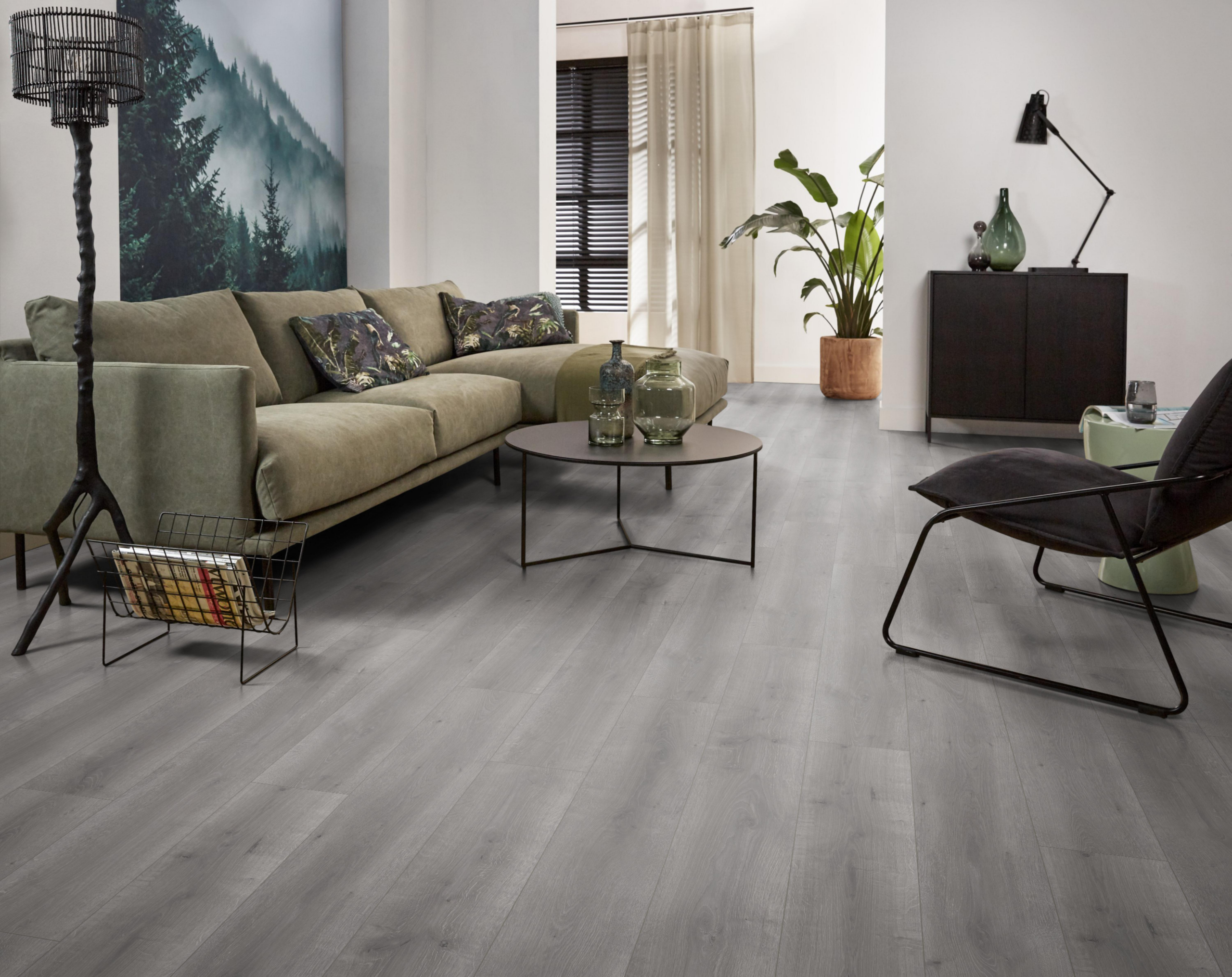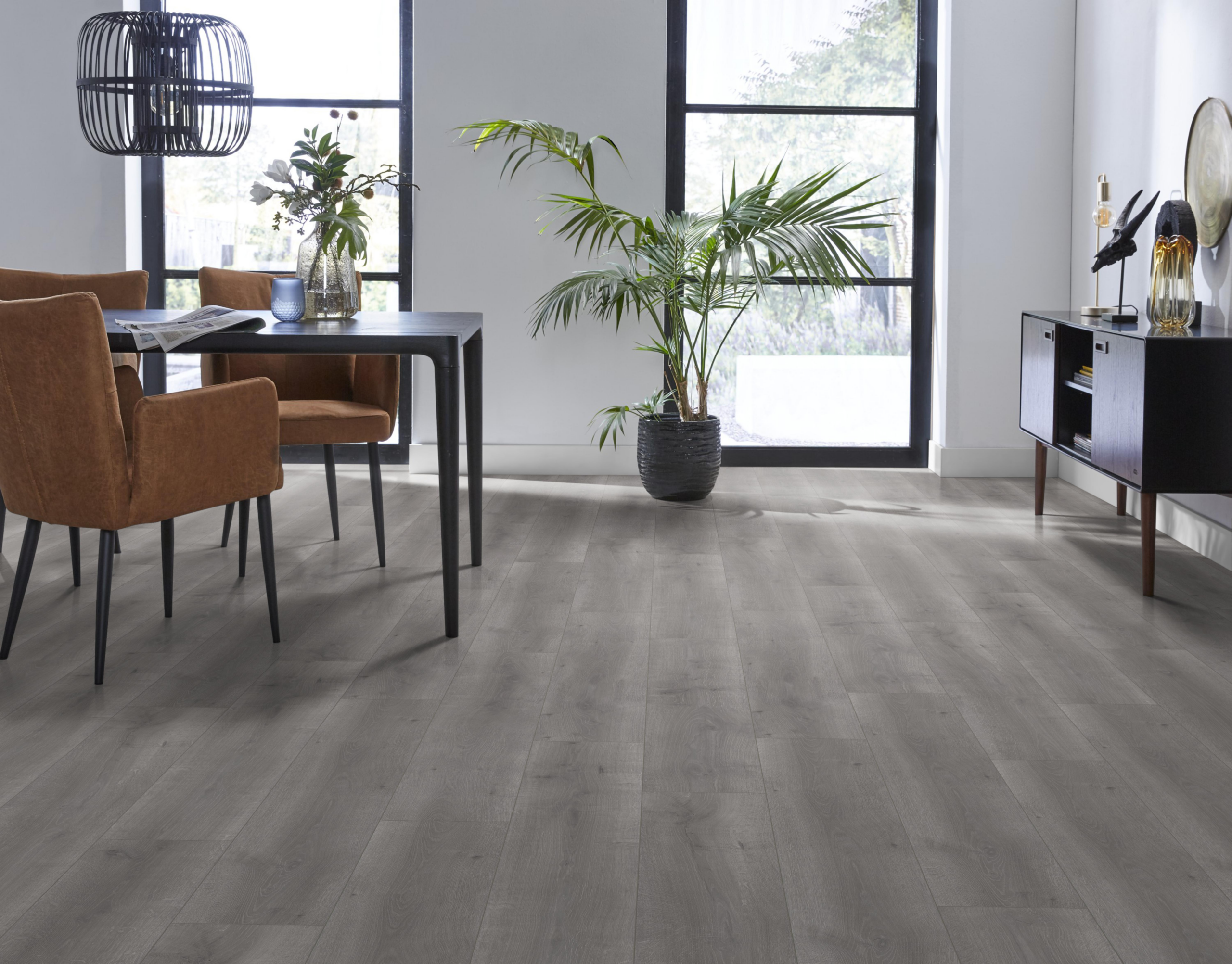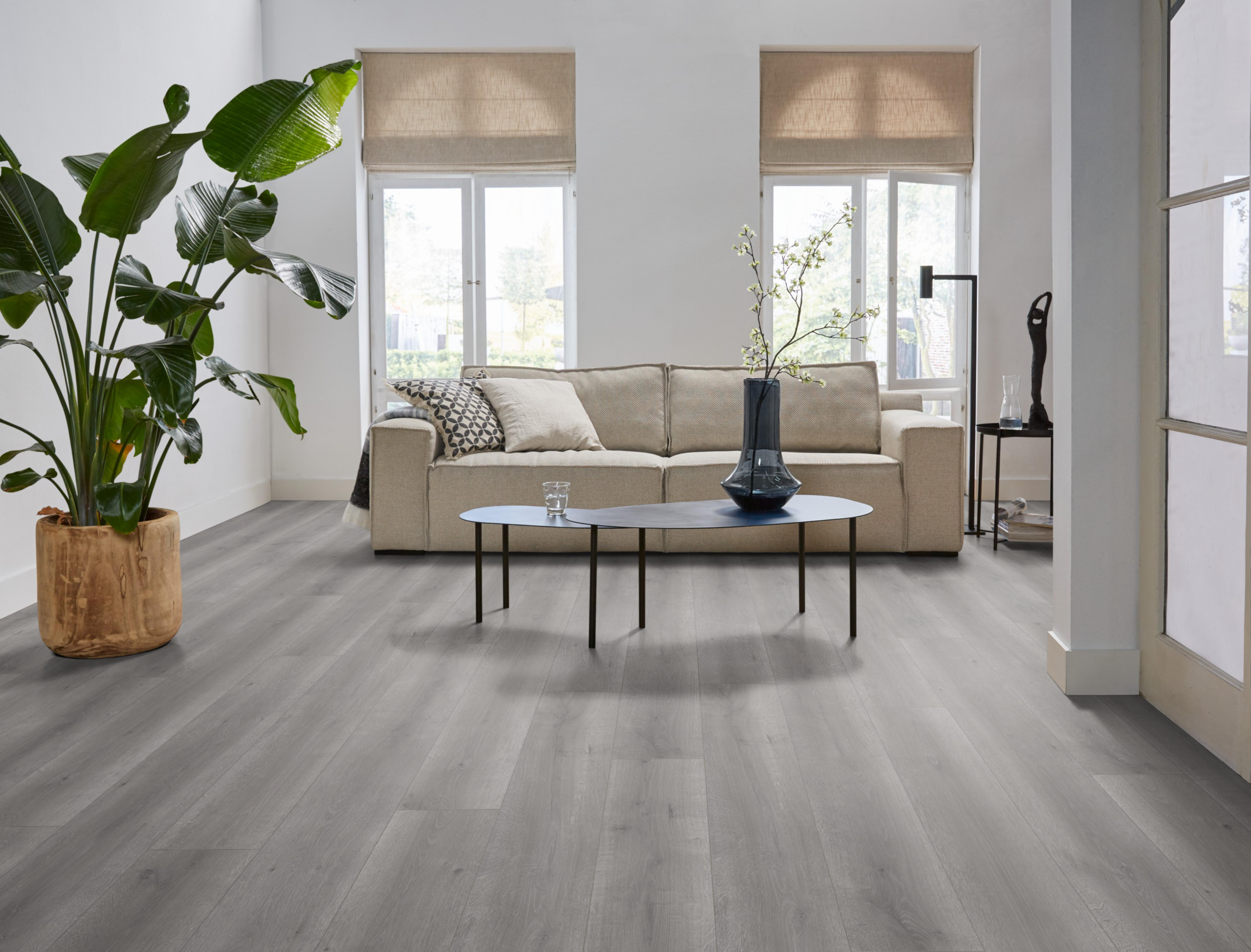 Ambiant Elite laminaat combineert brede planken (1286 × 194 mm) met een matte EIR-structuur. Verkrijgbaar in 6 eigentijdse eikendecors. Vraag direct een offerte aan bij Giga Vloeren – Groot in vloeren, klein in prijs.