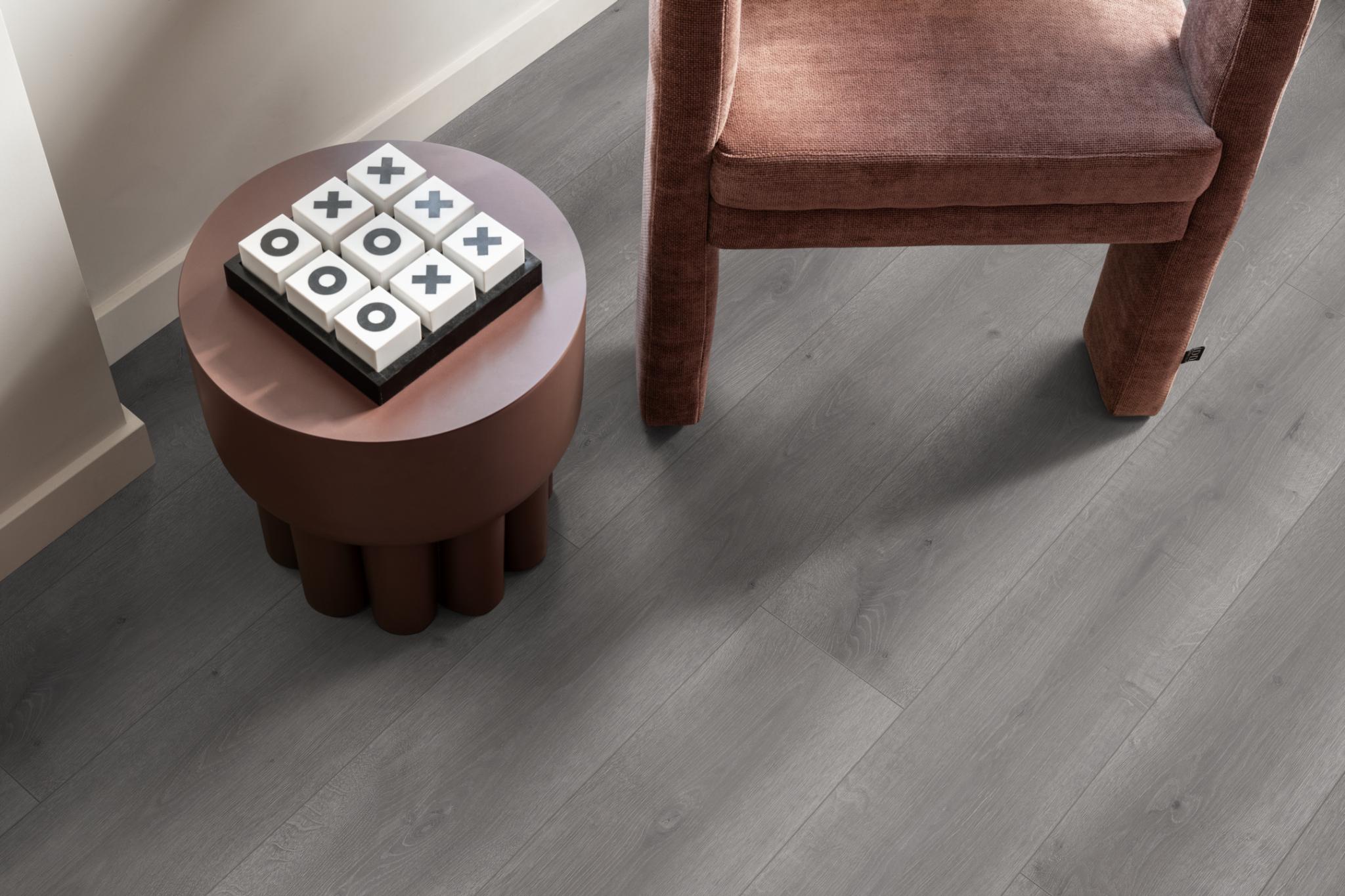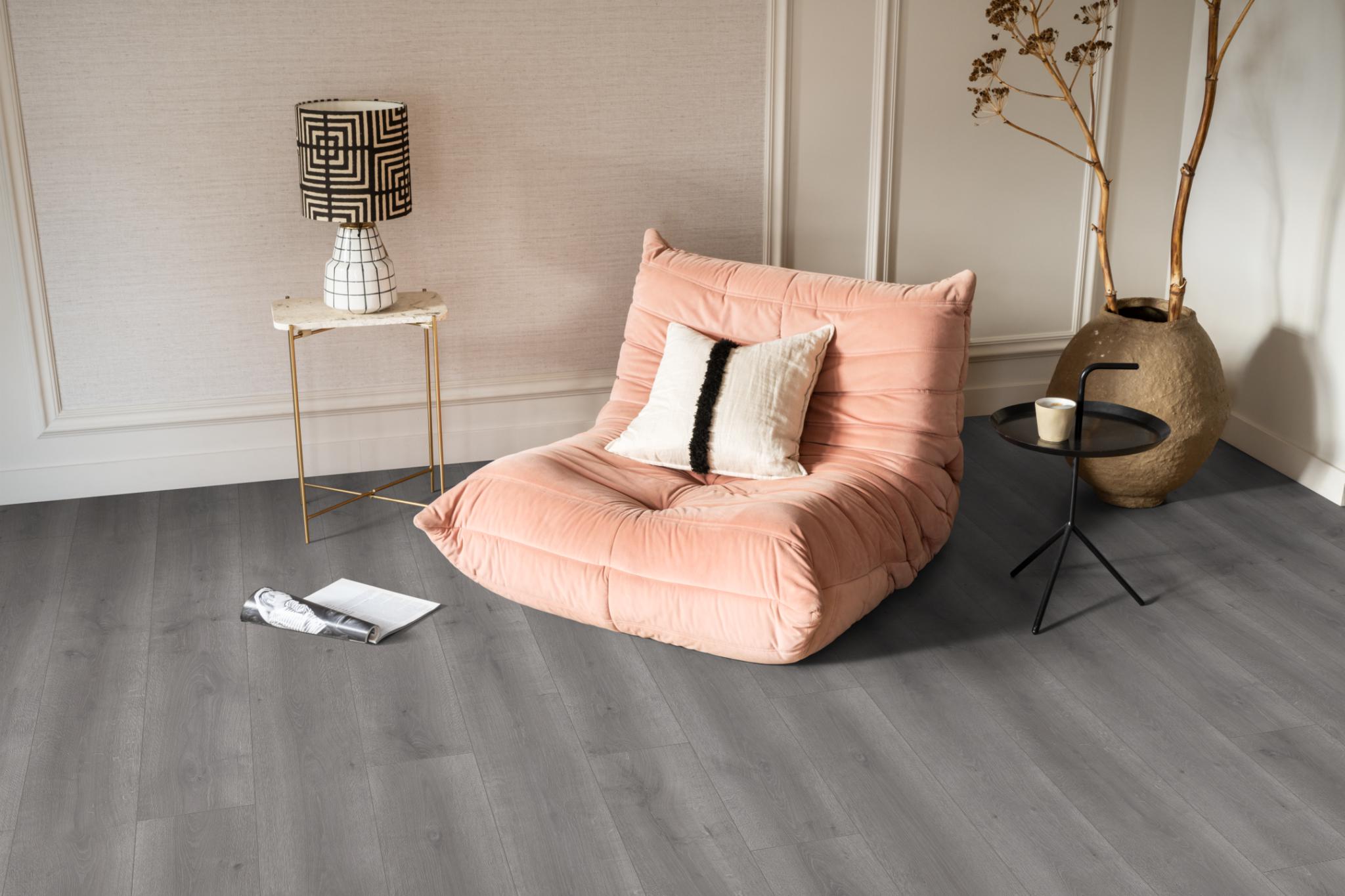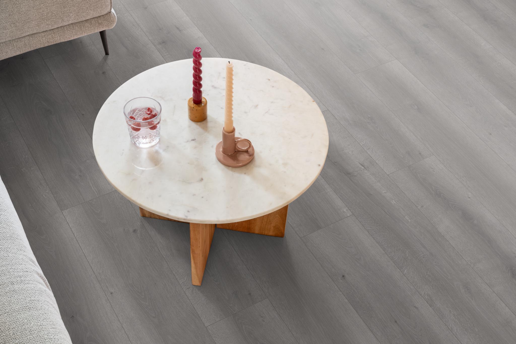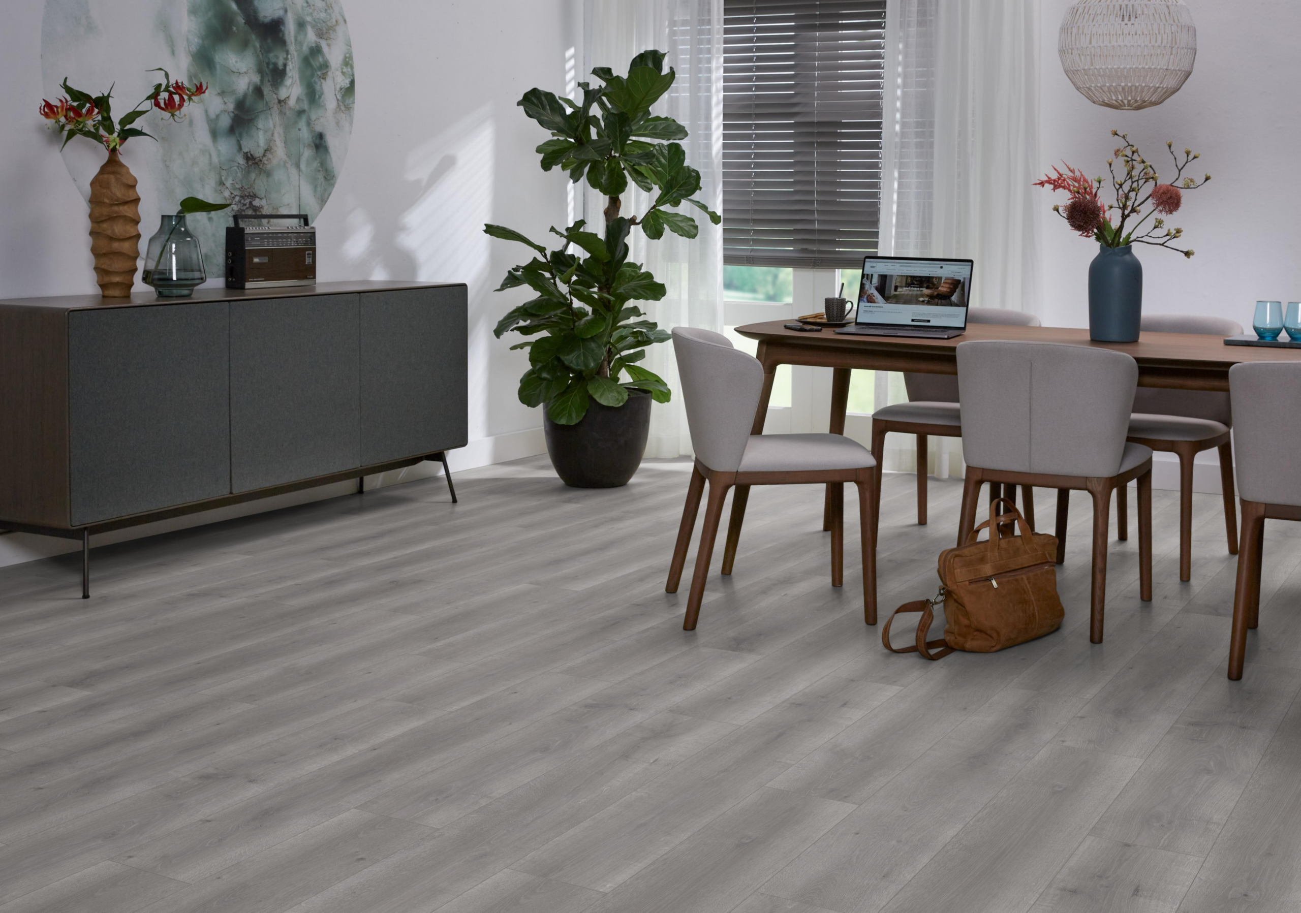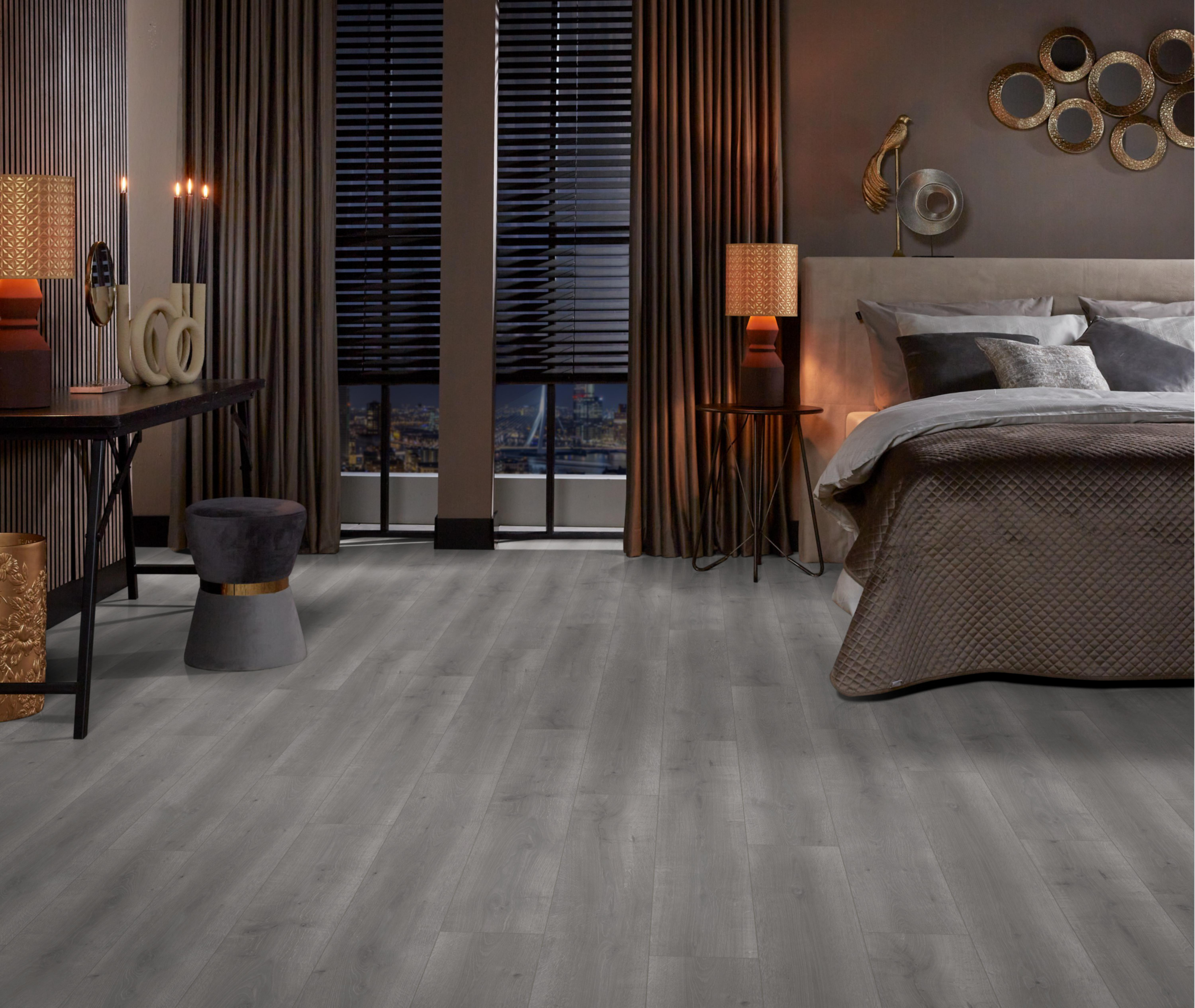 Ambiant Elite laminaat combineert brede planken (1286 × 194 mm) met een matte EIR-structuur. Verkrijgbaar in 6 eigentijdse eikendecors. Vraag direct een offerte aan bij Giga Vloeren – Groot in vloeren, klein in prijs.