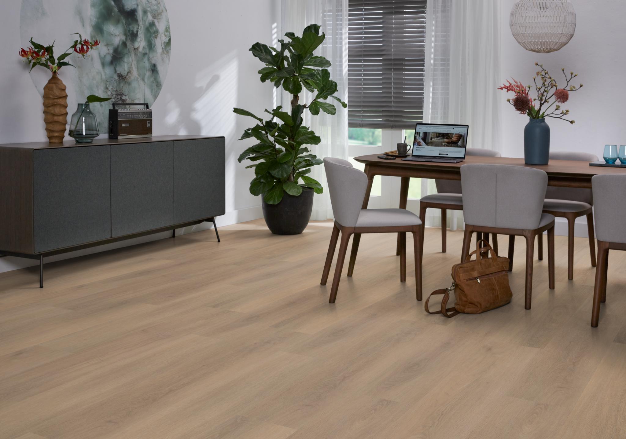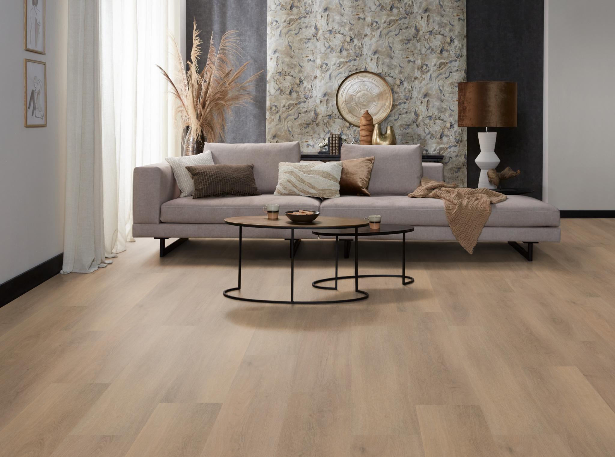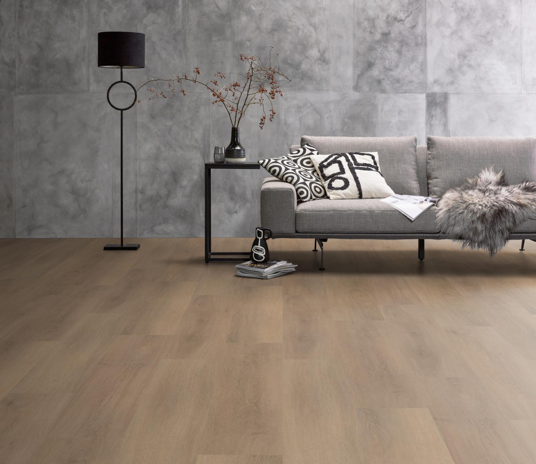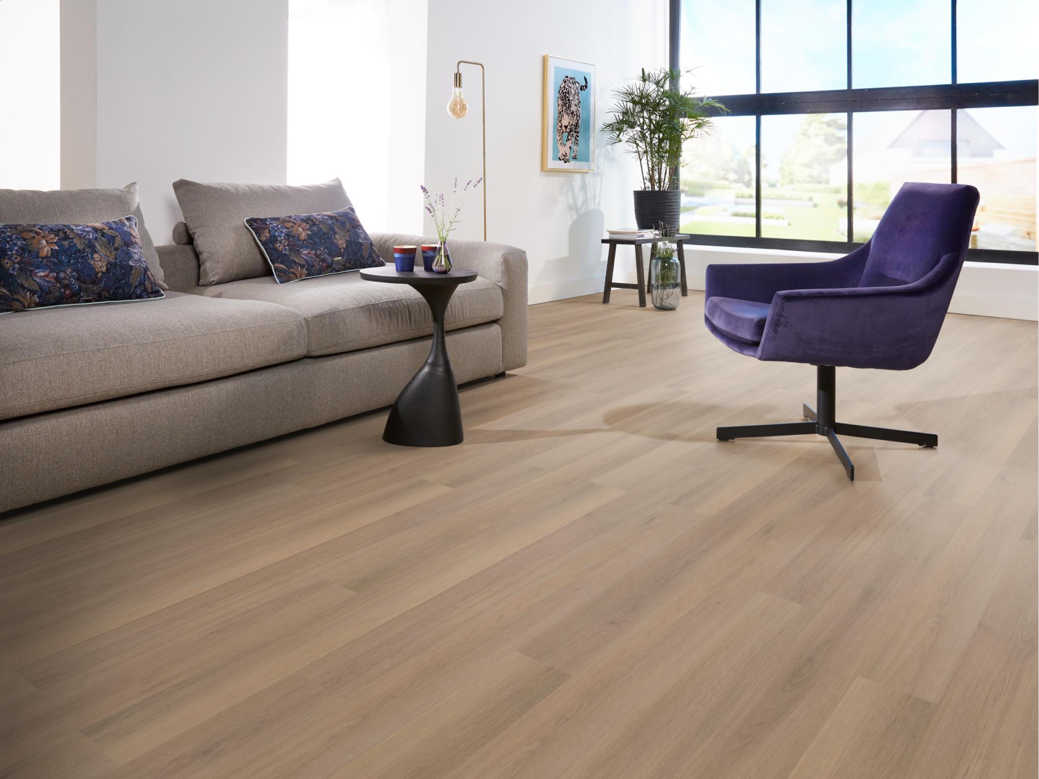 Ambiant Lavanta laminaat met brede matte eiken planken – rustieke uitstraling, geschikt voor vloerverwarming en elk interieur.