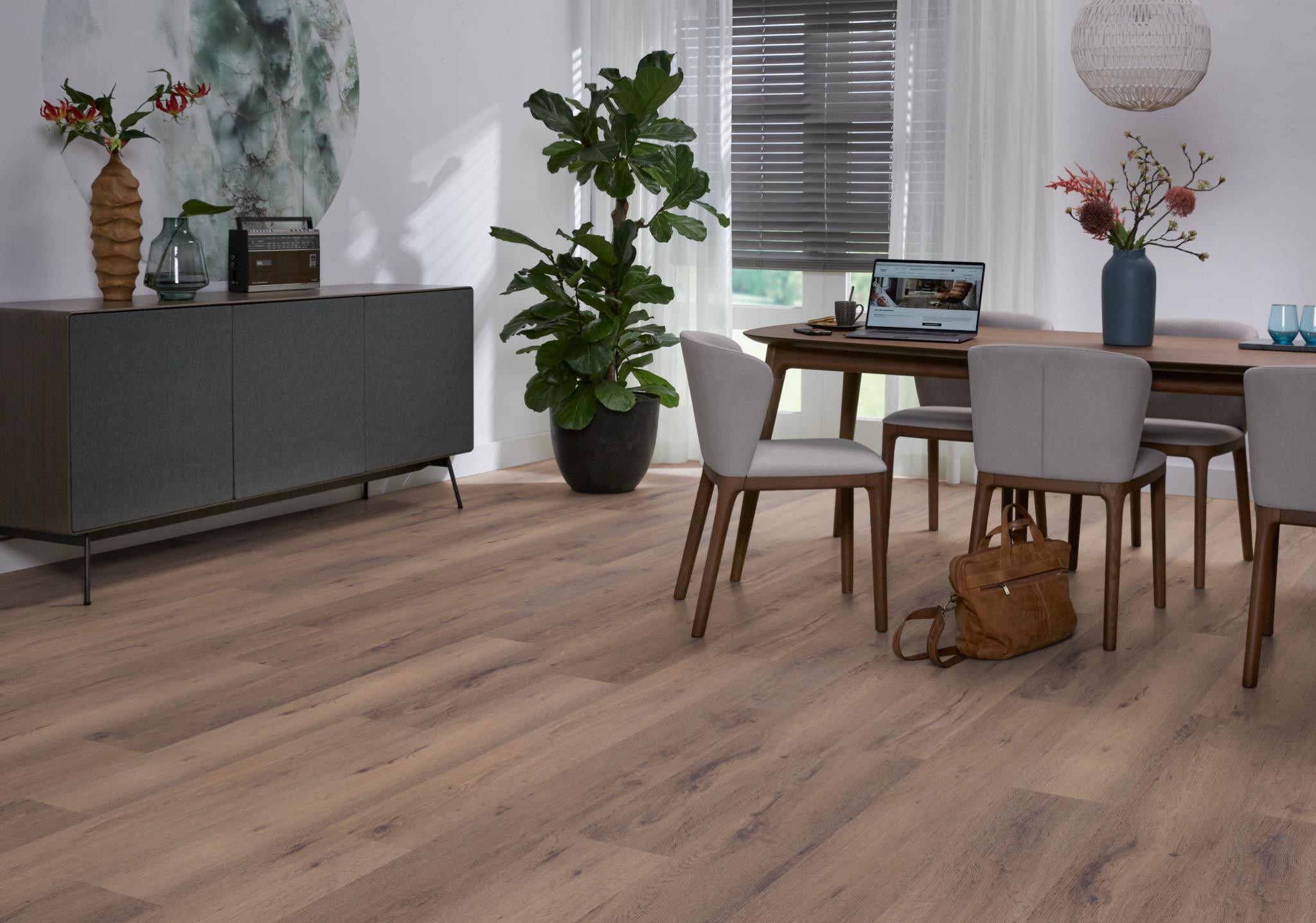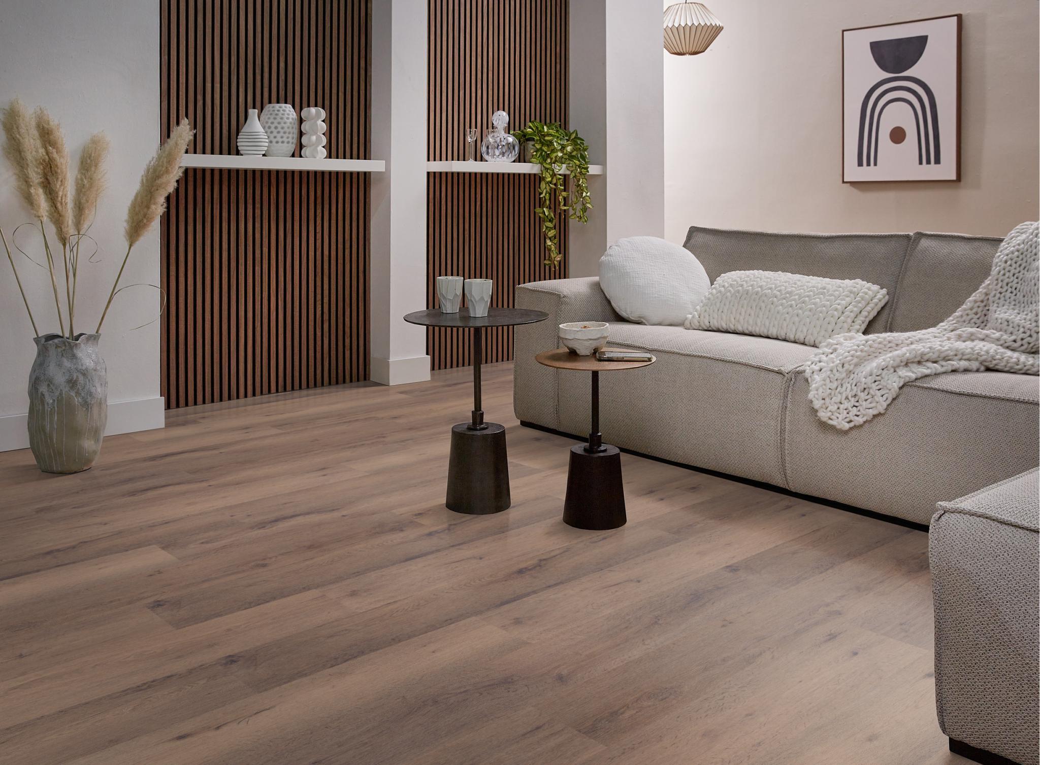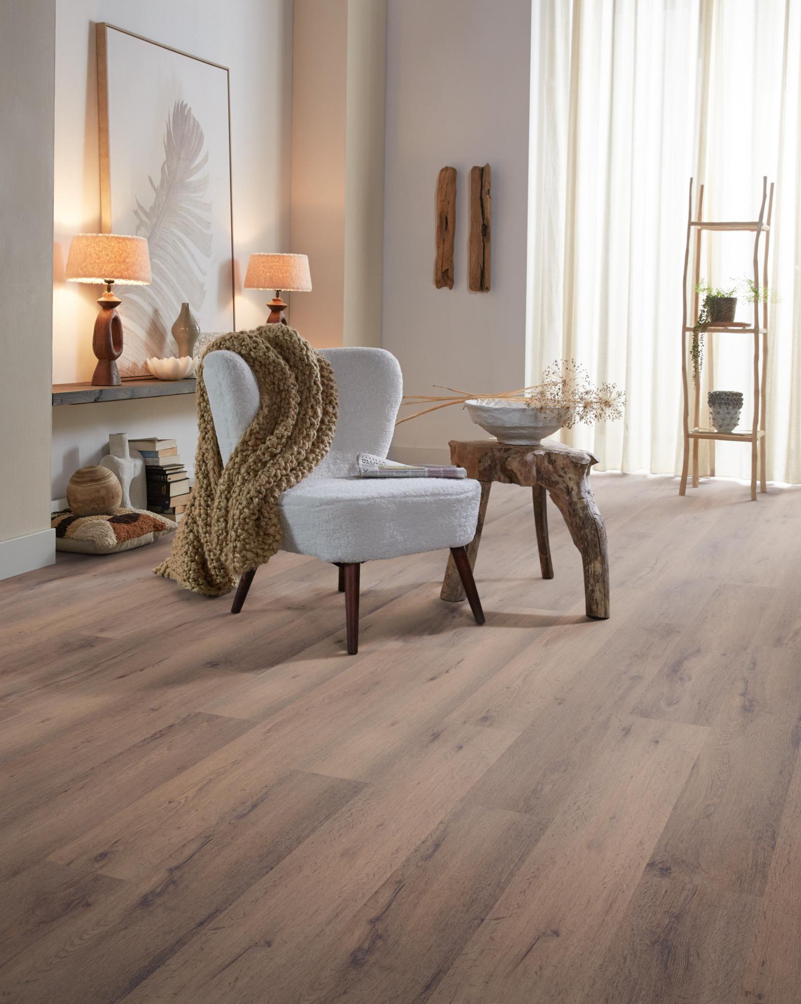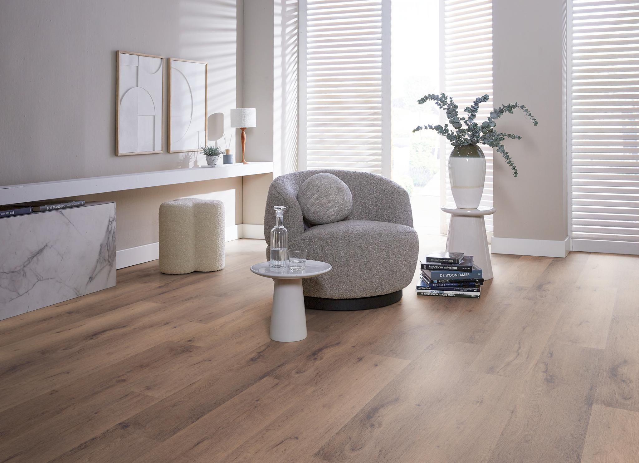 Ambiant Livera is een laminaatvloer met natuurlijke houtstructuur en een extra matte toplaag. Verkrijgbaar in vier warme eikenkleuren, ideaal voor een industrieel landelijk interieur. Geschikt voor vloerverwarming.