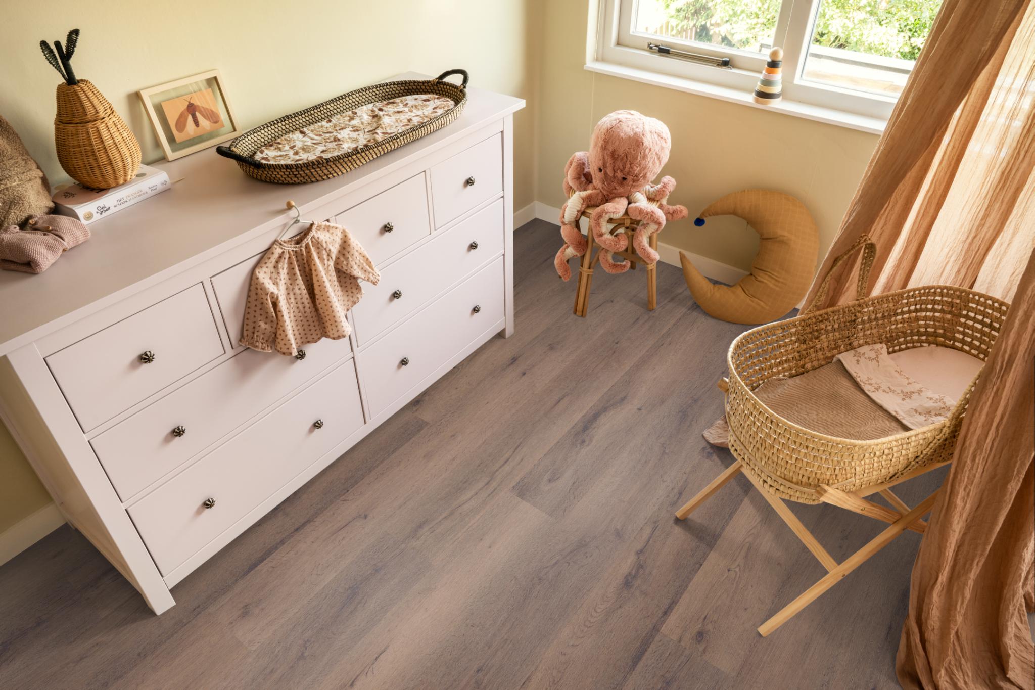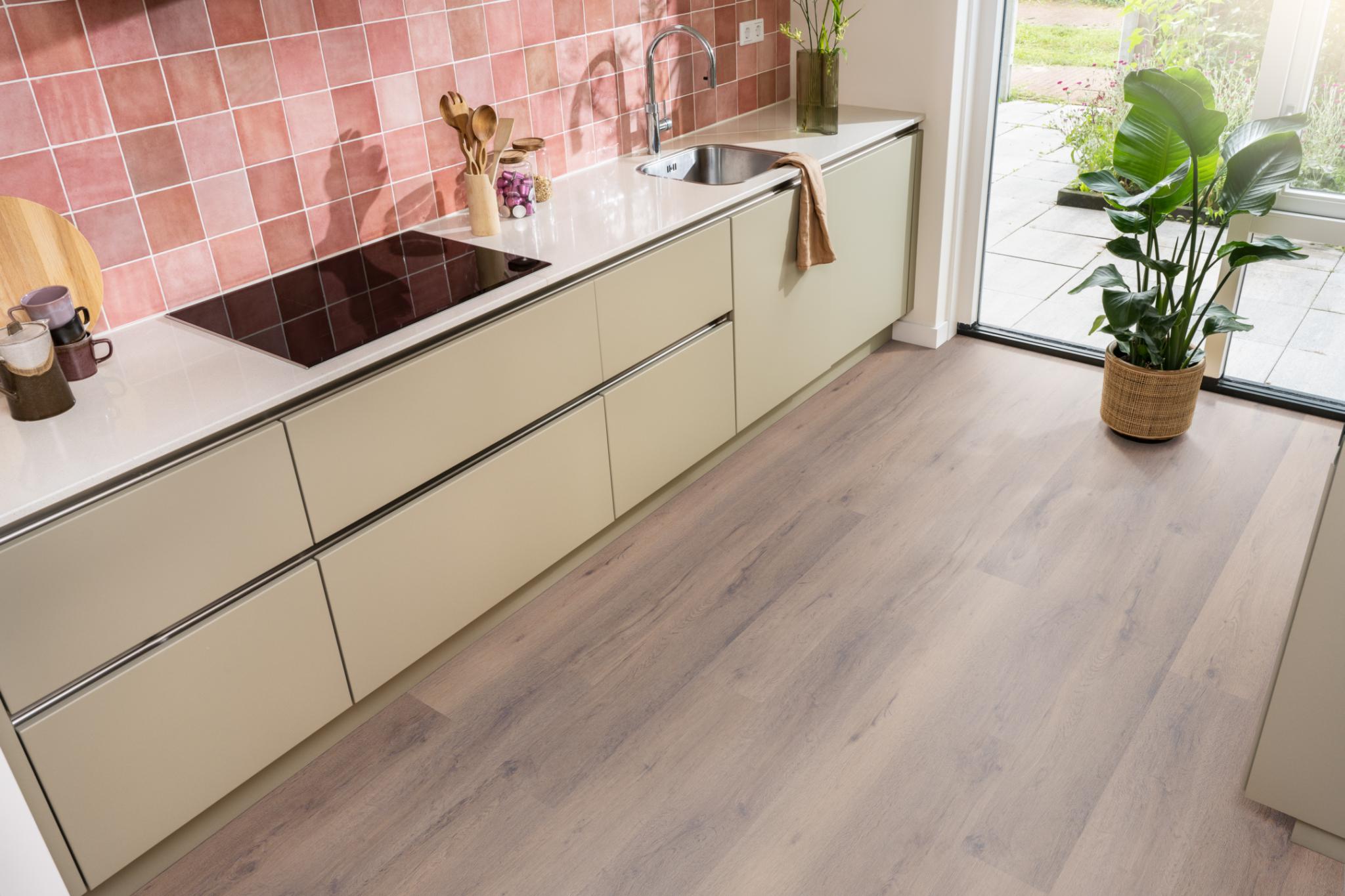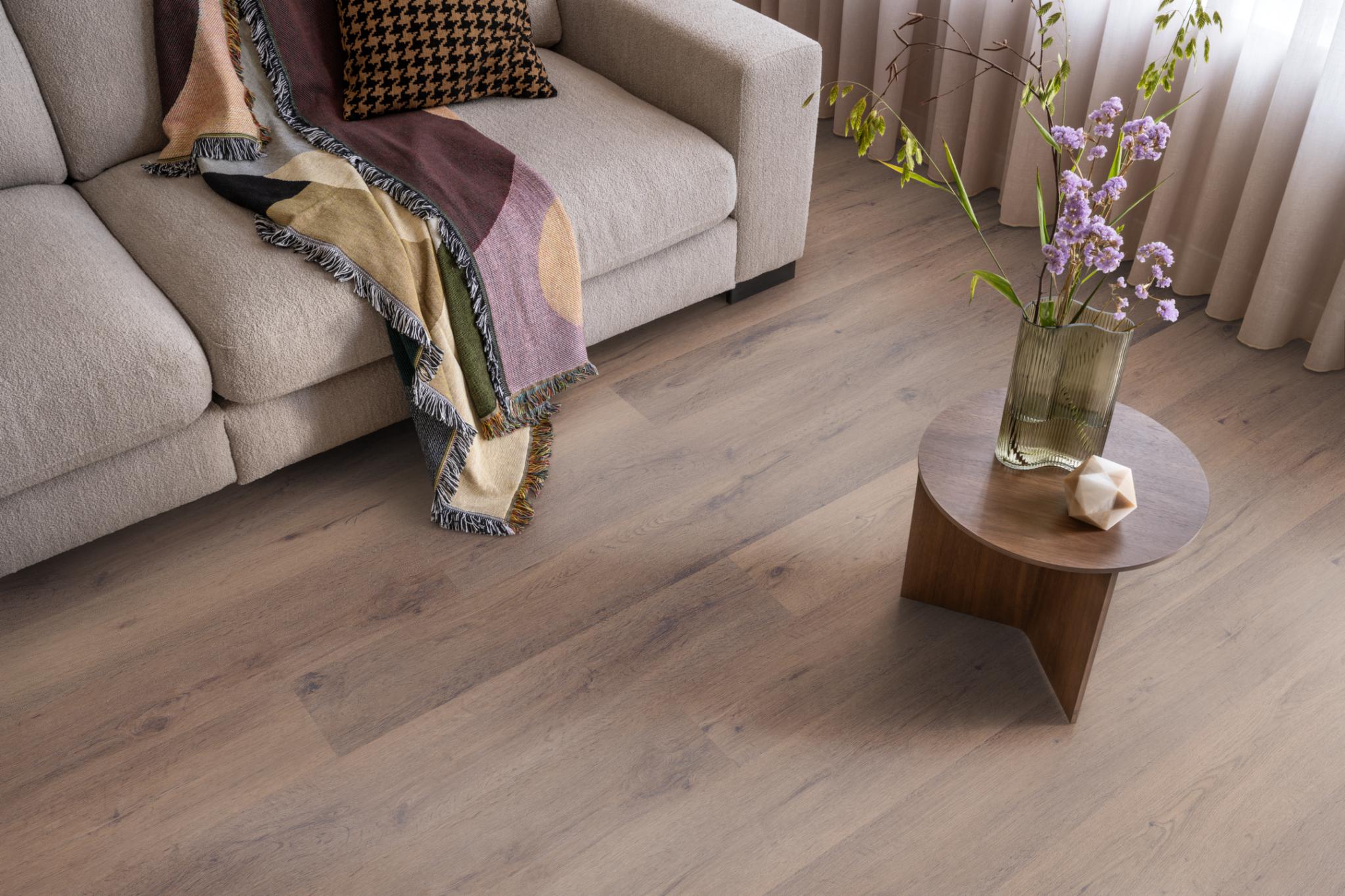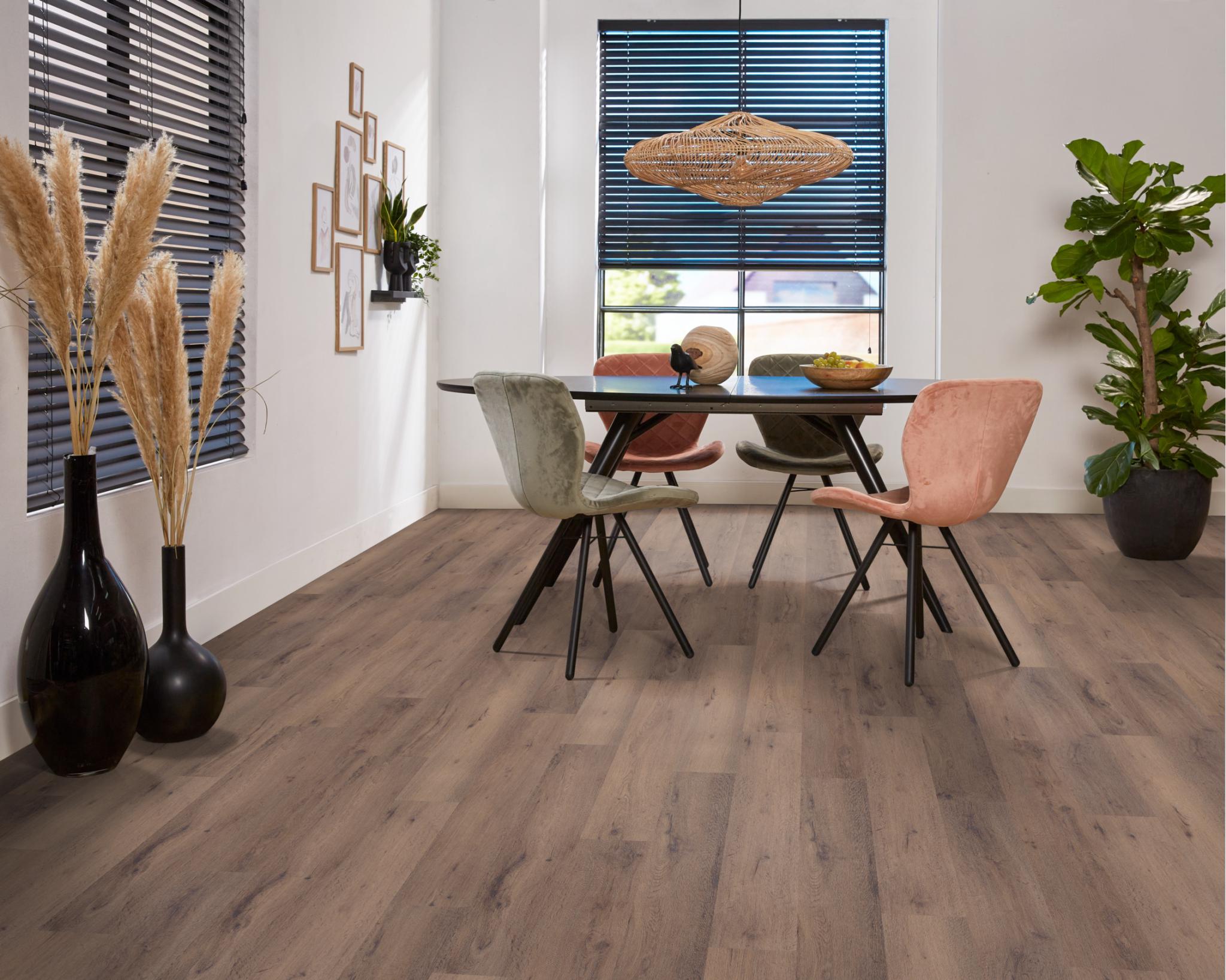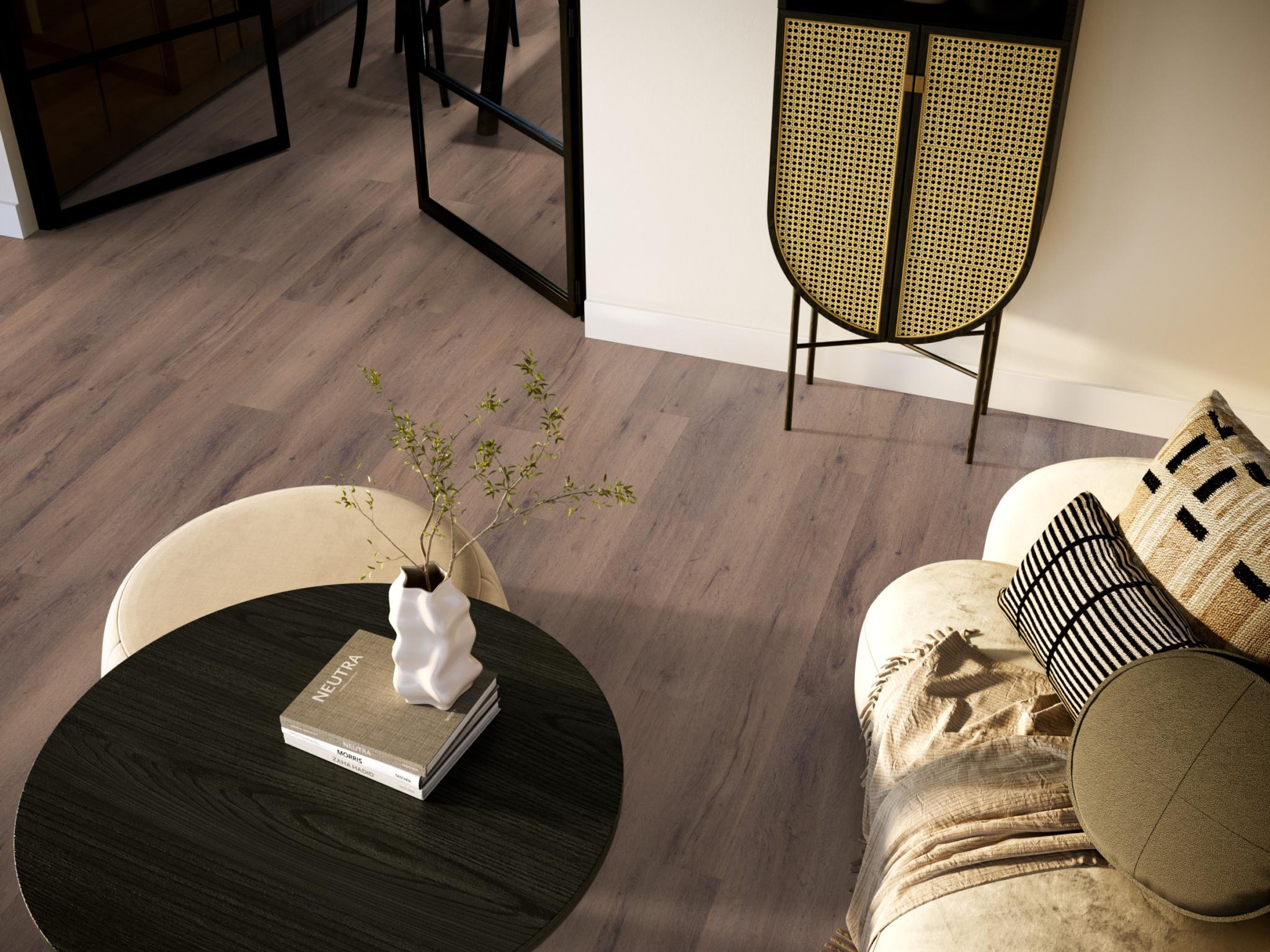 Ambiant Livera is een laminaatvloer met natuurlijke houtstructuur en een extra matte toplaag. Verkrijgbaar in vier warme eikenkleuren, ideaal voor een industrieel landelijk interieur. Geschikt voor vloerverwarming.