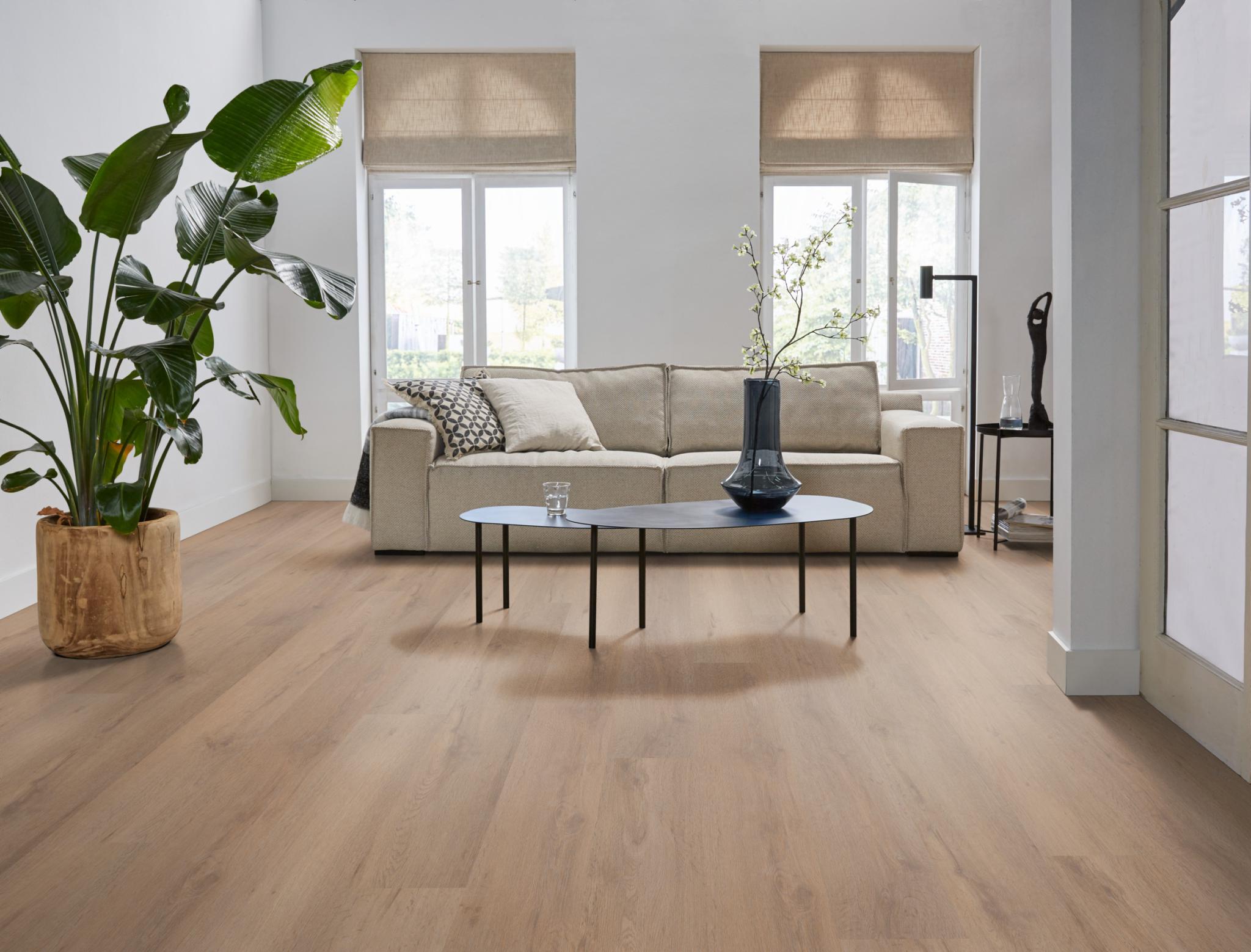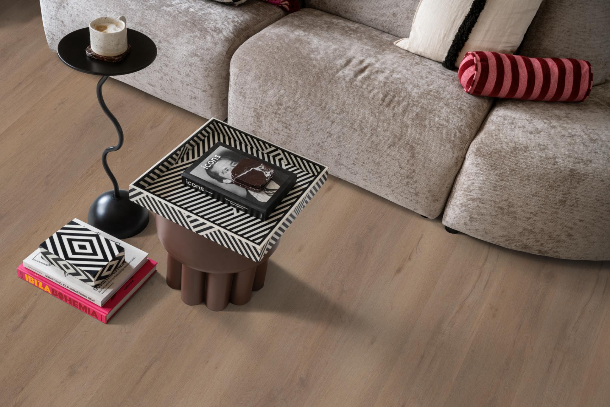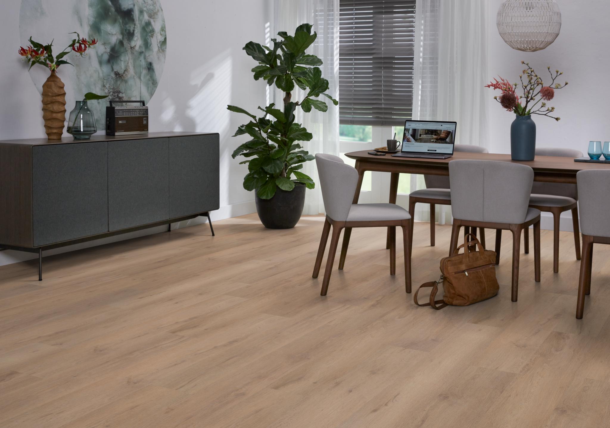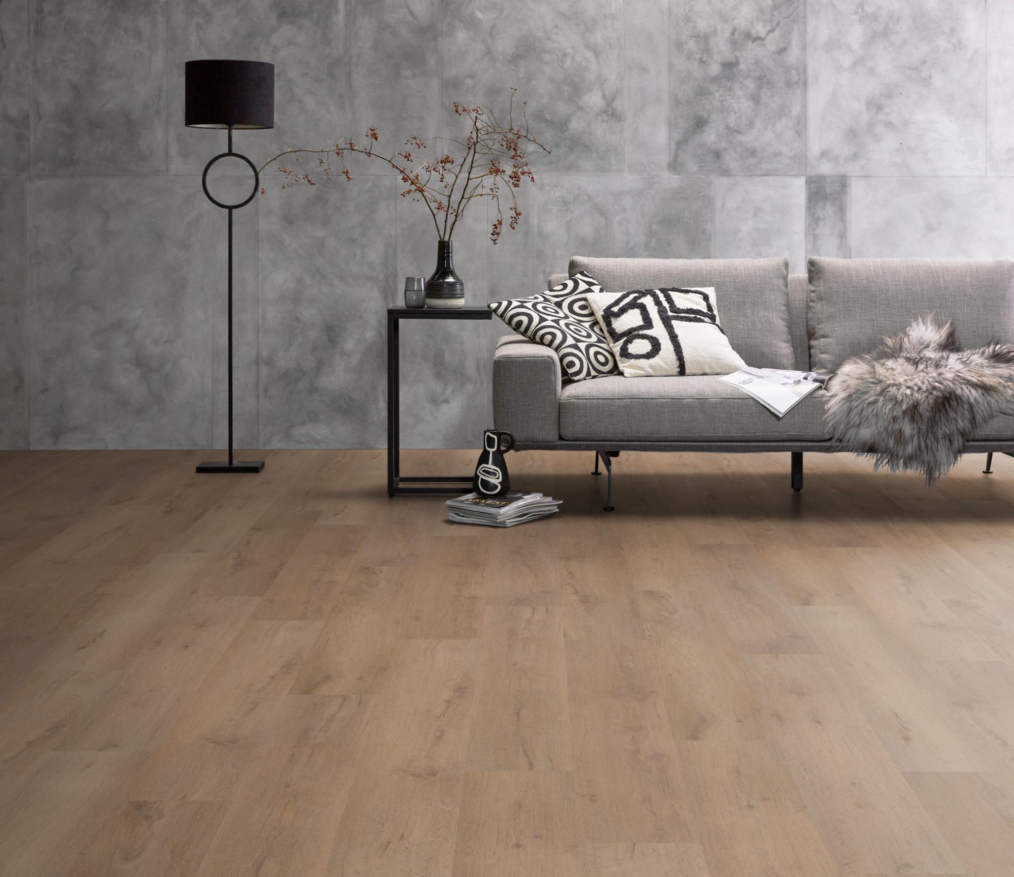 Ambiant Livera is een laminaatvloer met natuurlijke houtstructuur en een extra matte toplaag. Verkrijgbaar in vier warme eikenkleuren, ideaal voor een industrieel landelijk interieur. Geschikt voor vloerverwarming.