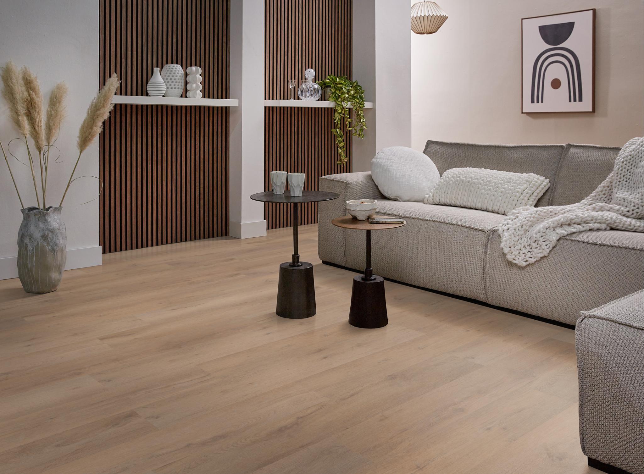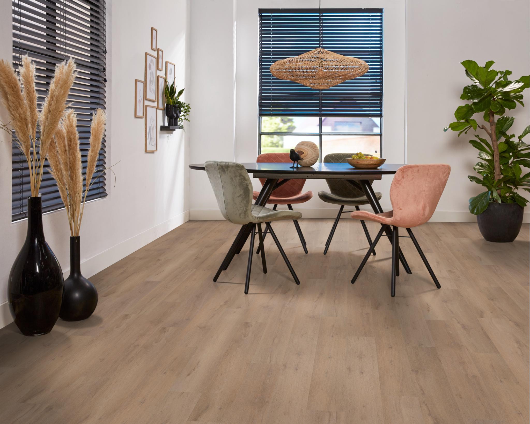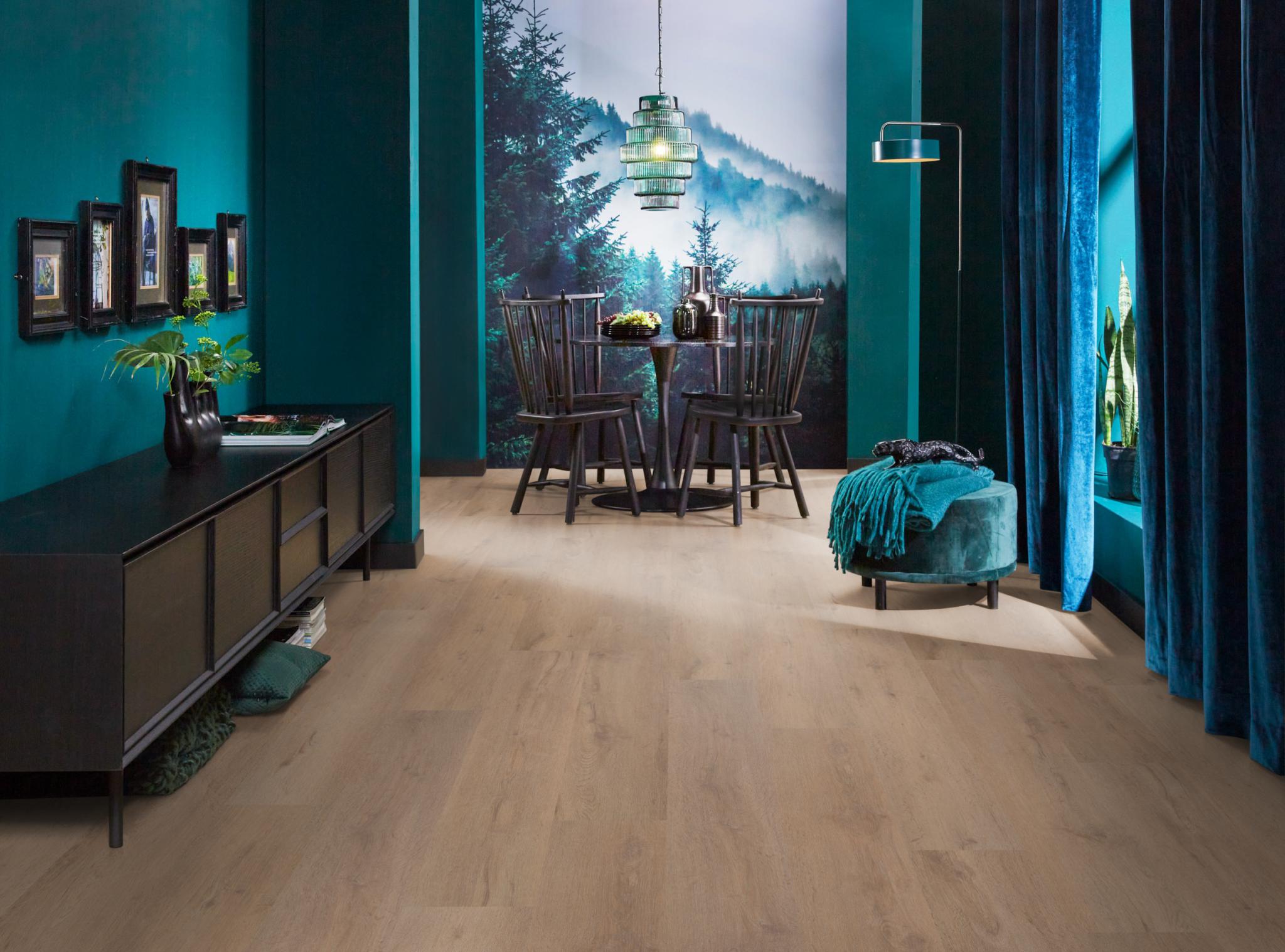 Ambiant Livera is een laminaatvloer met natuurlijke houtstructuur en een extra matte toplaag. Verkrijgbaar in vier warme eikenkleuren, ideaal voor een industrieel landelijk interieur. Geschikt voor vloerverwarming.