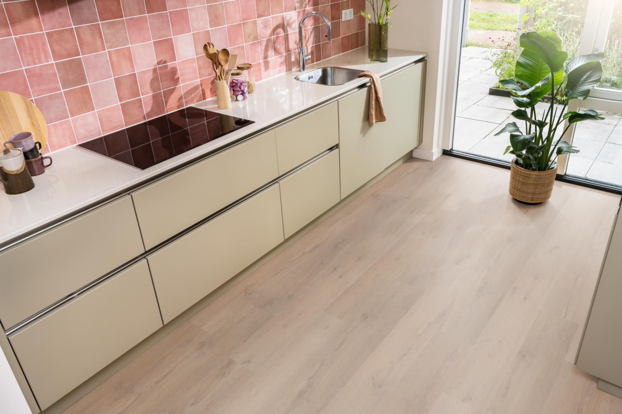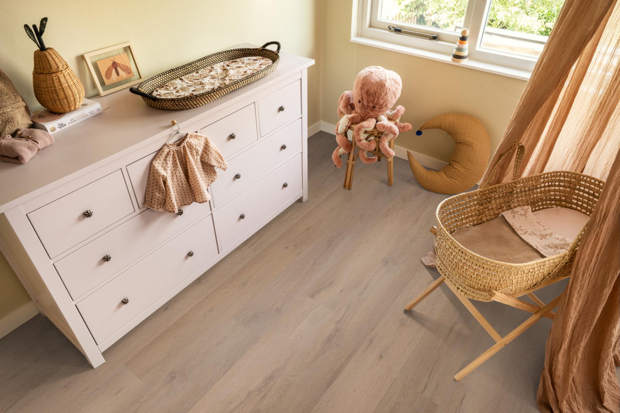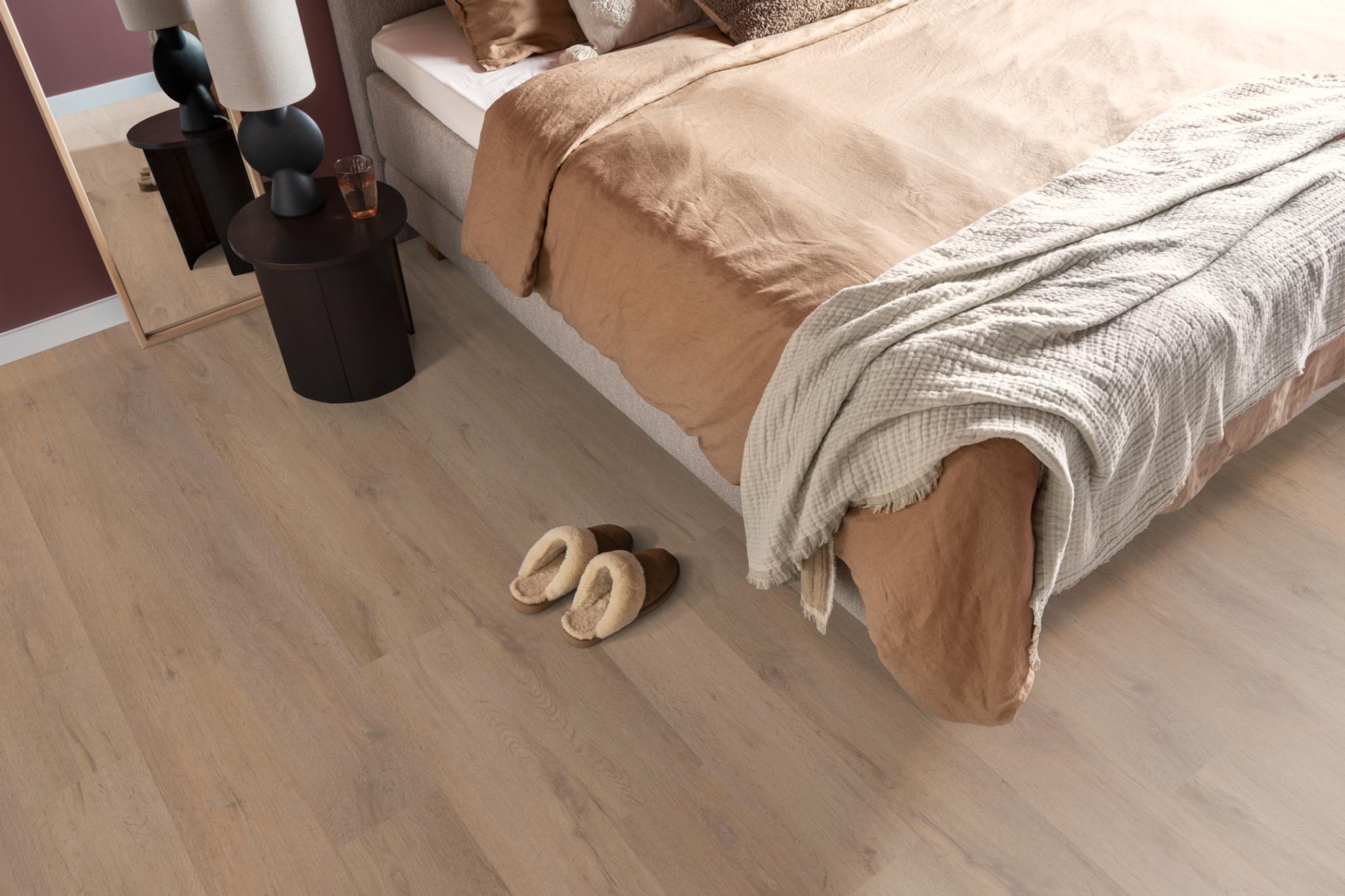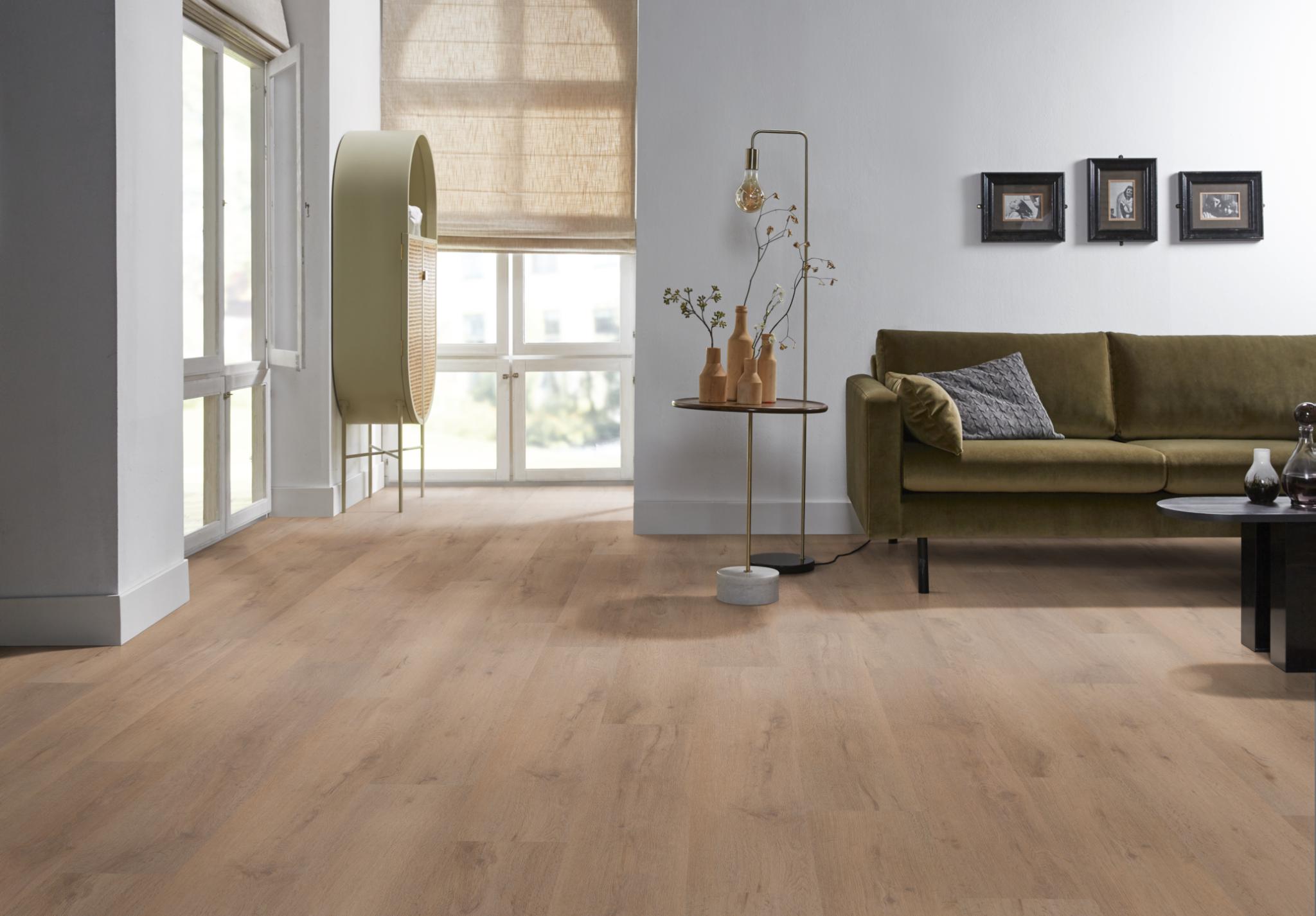 Ambiant Livera is een laminaatvloer met natuurlijke houtstructuur en een extra matte toplaag. Verkrijgbaar in vier warme eikenkleuren, ideaal voor een industrieel landelijk interieur. Geschikt voor vloerverwarming.