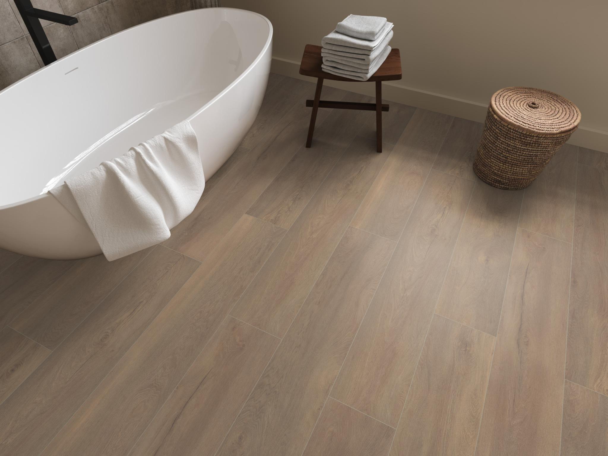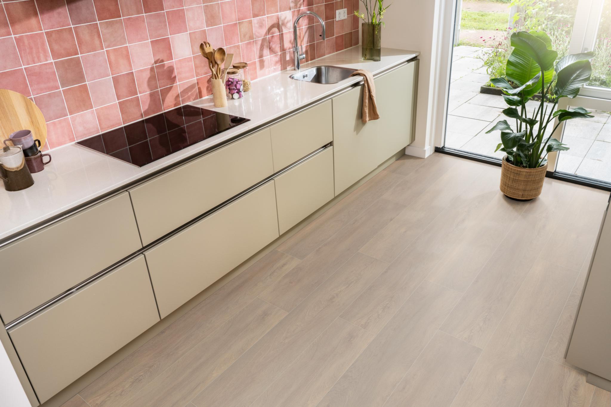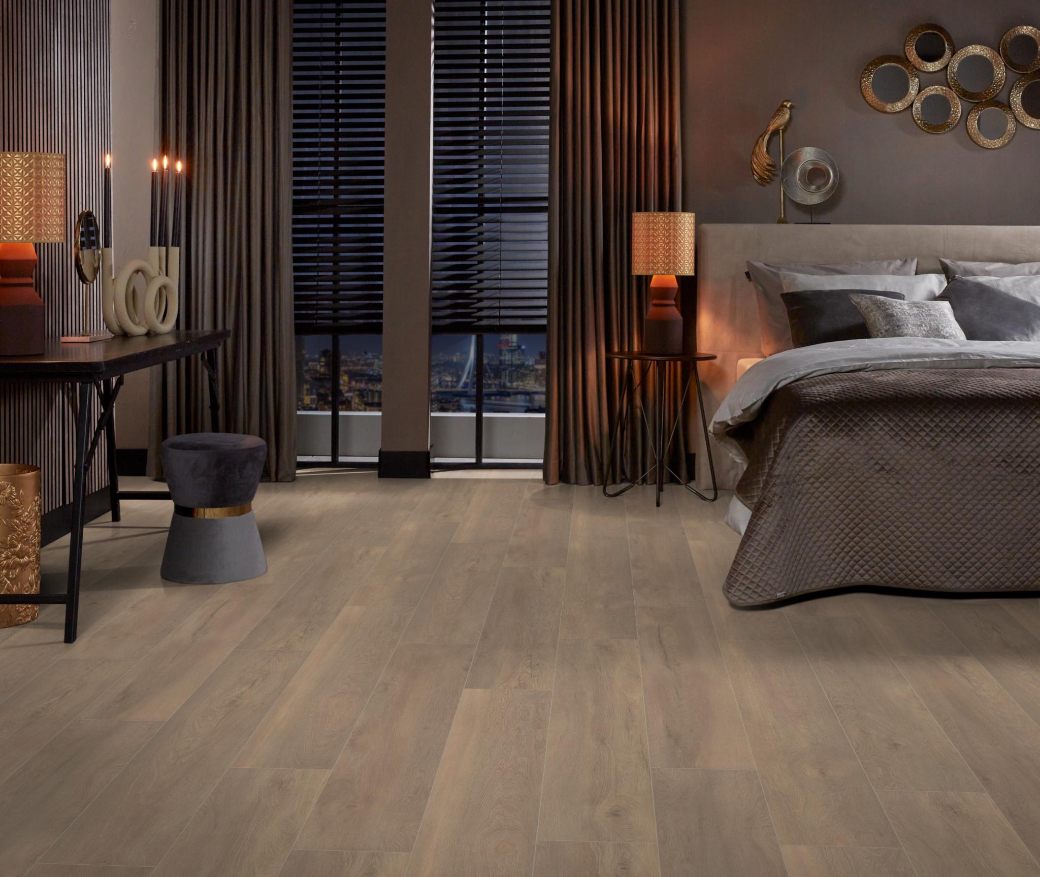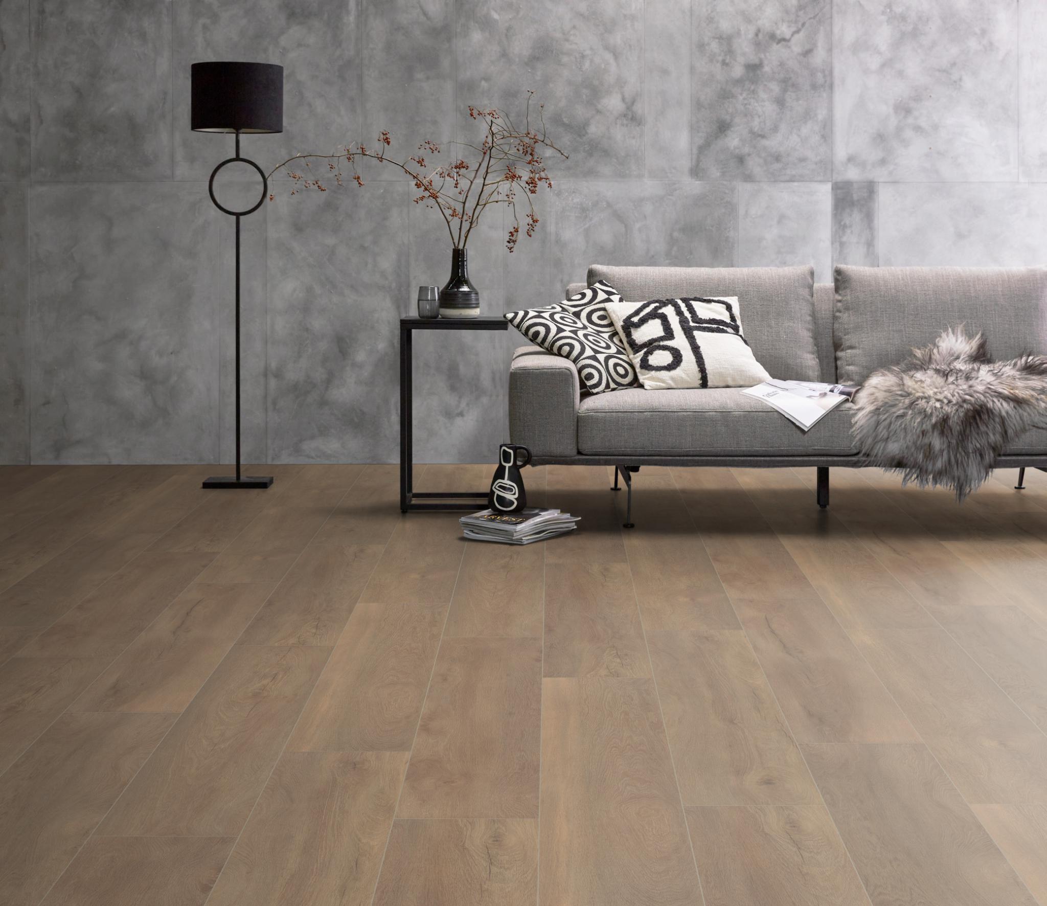 Sfeervolle laminaatvloer uit de Ambiant Saarland collectie – geschikt voor vloerverwarming, waterbestendig en natuurgetrouw afgewerkt.