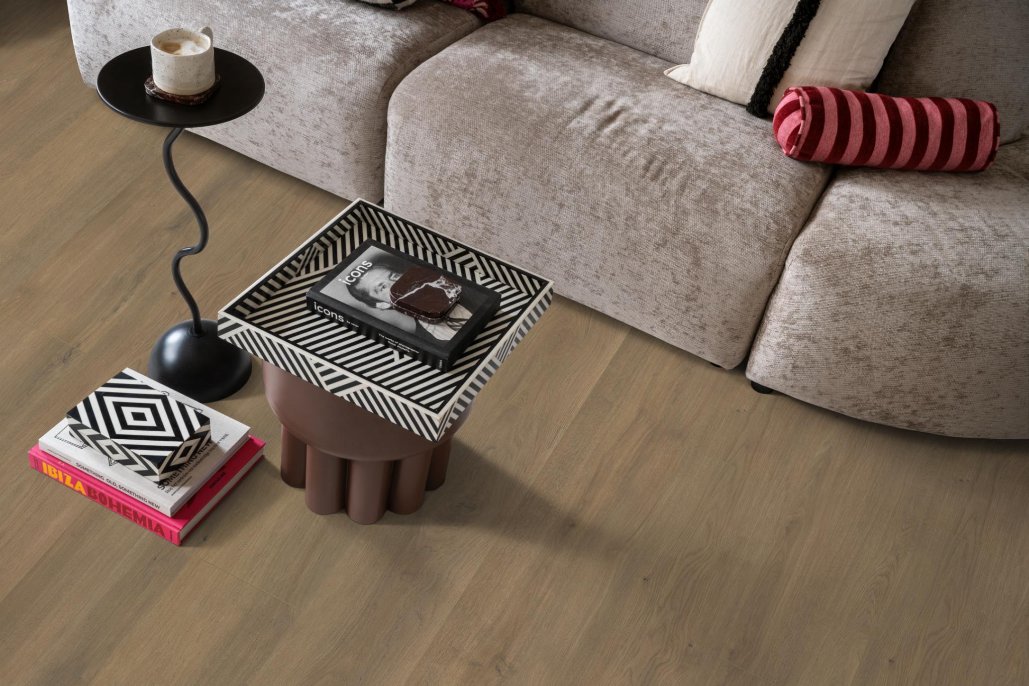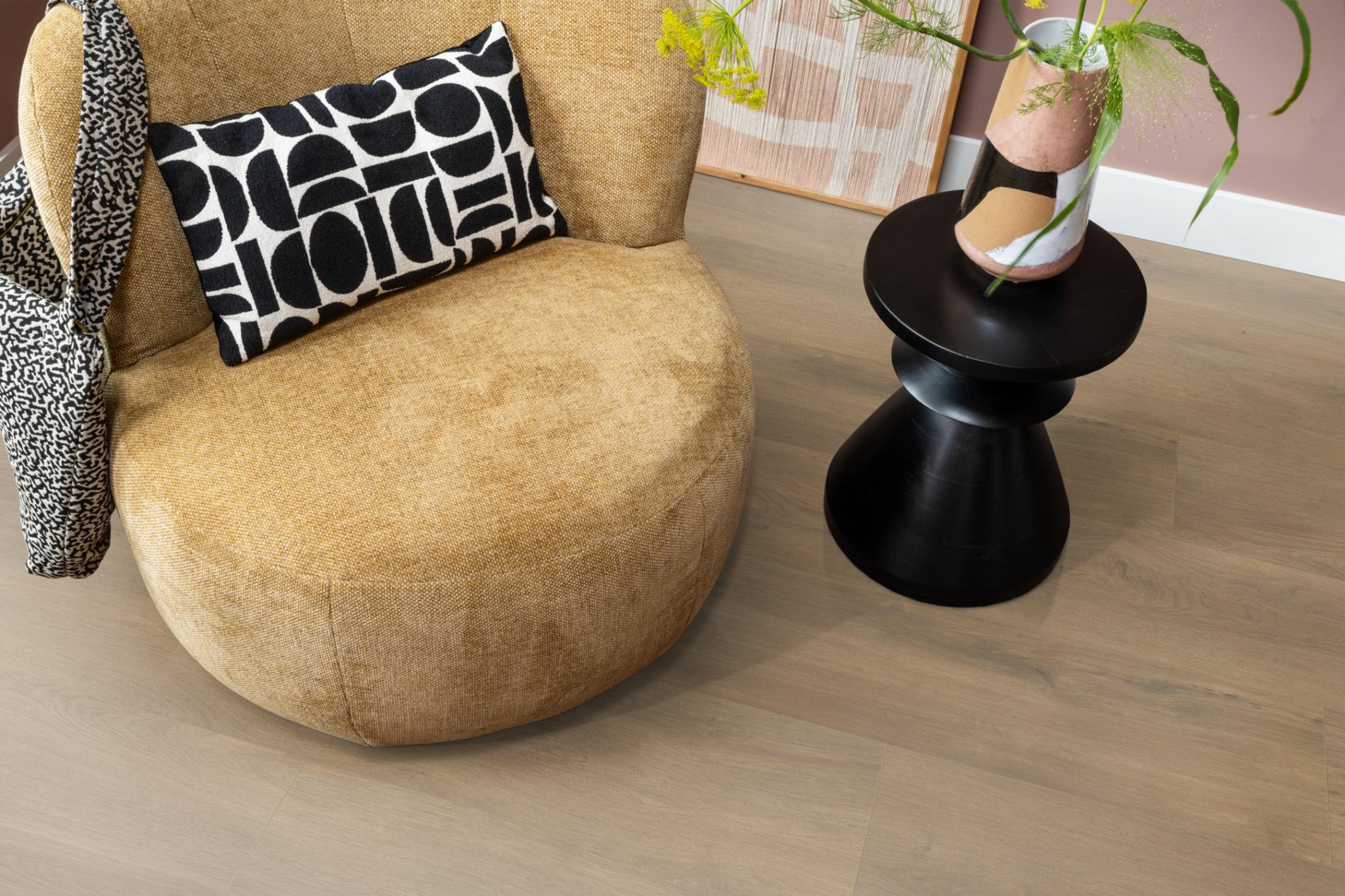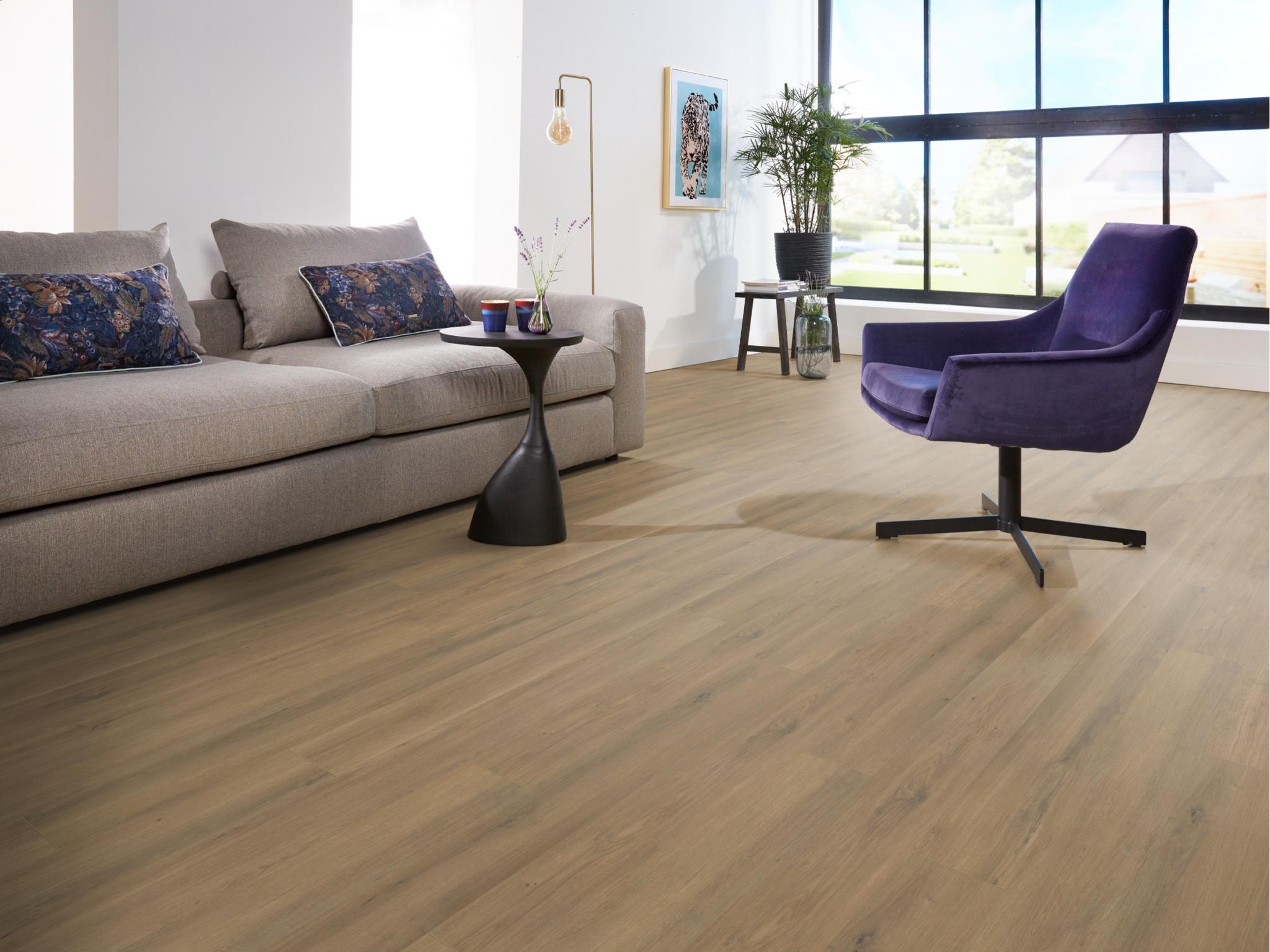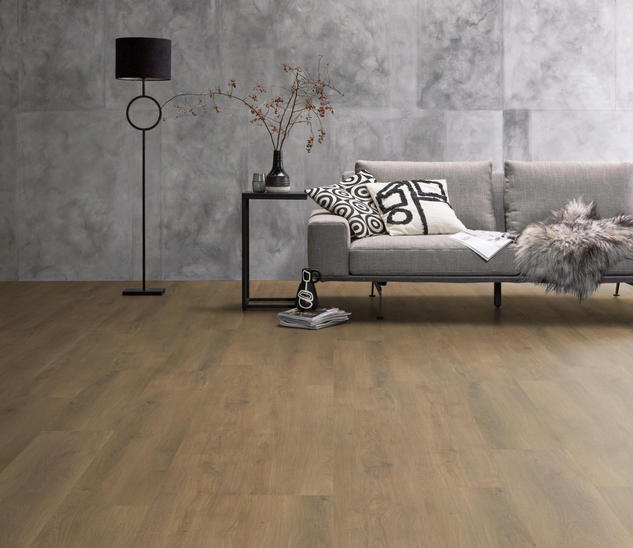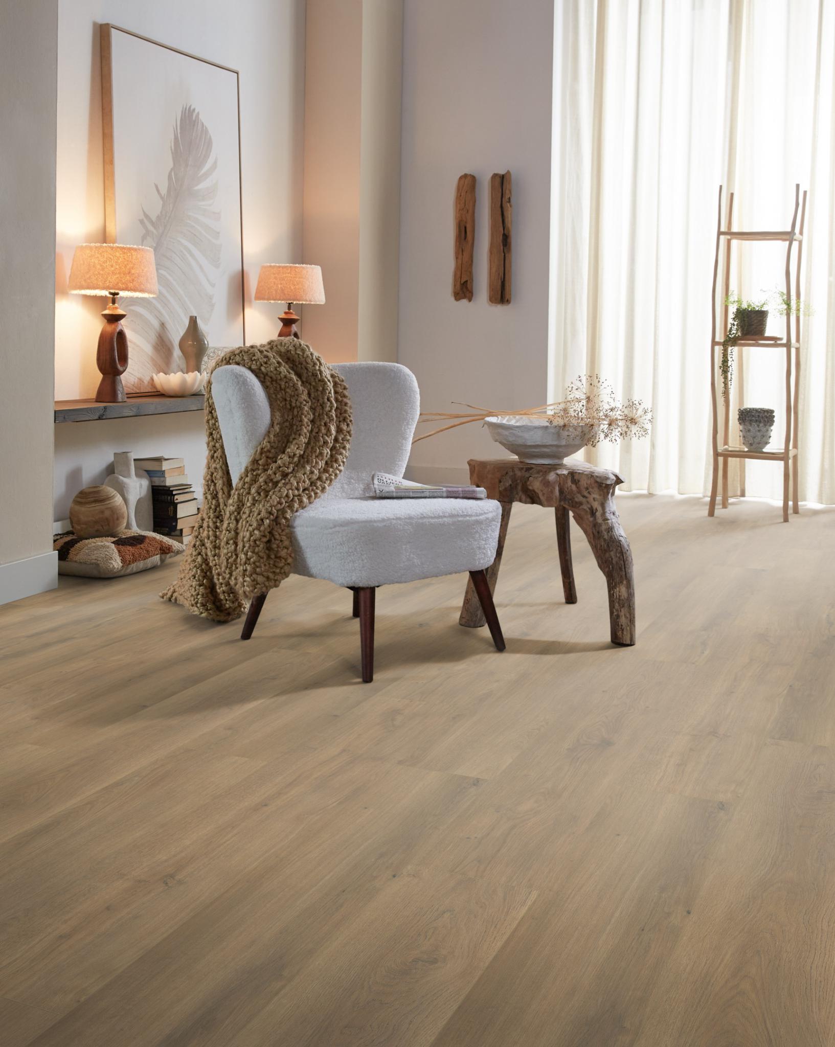 De Ambiant Sereno laminaatcollectie geeft je interieur een stoere, robuuste uitstraling. De extra brede plank (1380 × 244 mm) zorgt voor een ruimtelijk effect en een rustige, egale basis. Met vier karaktervolle eikenkleuren is er altijd een passende Sereno voor jouw woning.