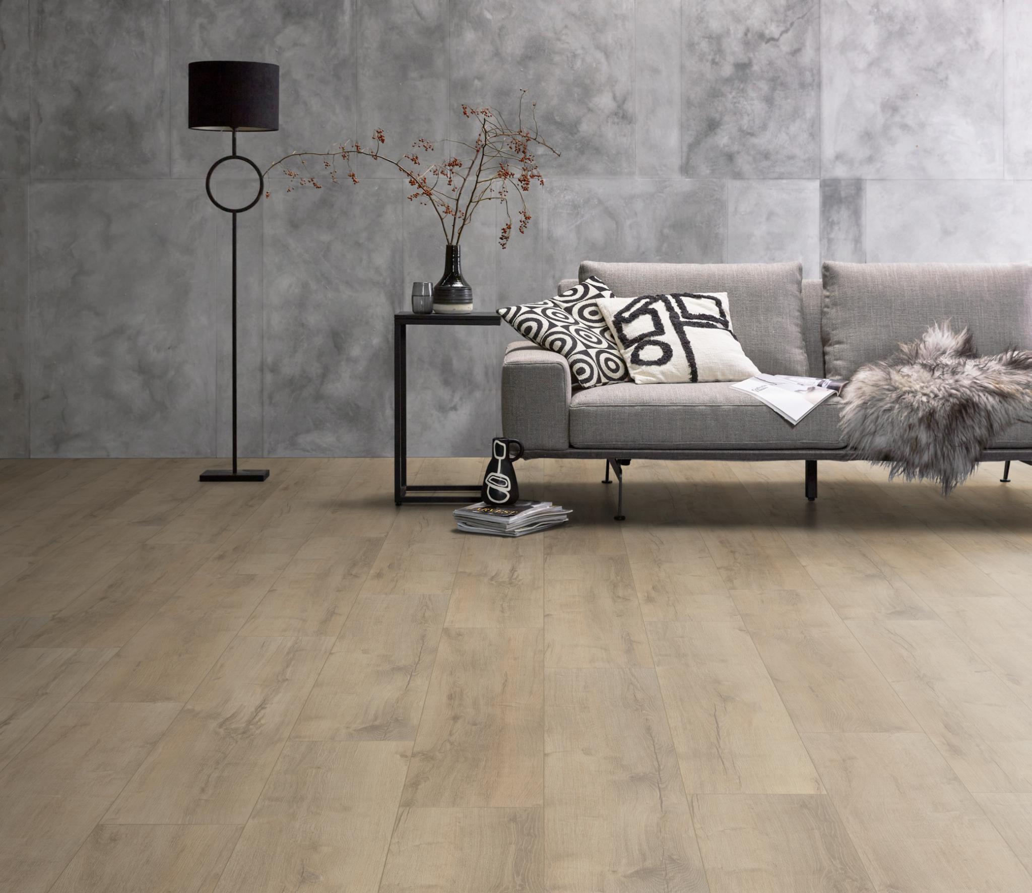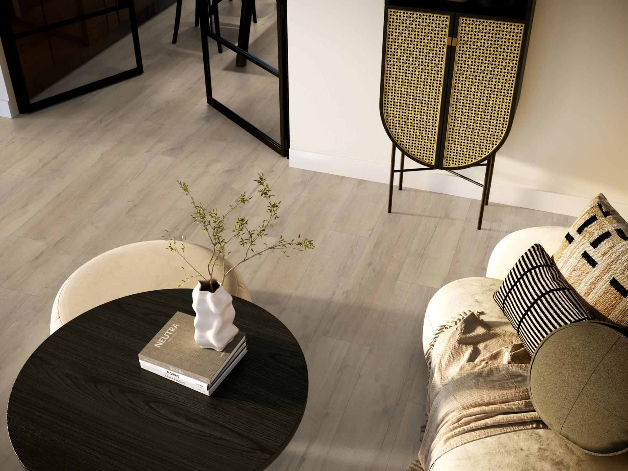 De Ambiant Superior Oak laminaatvloer combineert extra brede planken (1380 × 244 mm) met een realistische allover EIR-structuur en een matte toplaag. Verkrijgbaar in vier trendy eikenkleuren, ideaal voor drukke huishoudens én commerciële ruimtes.