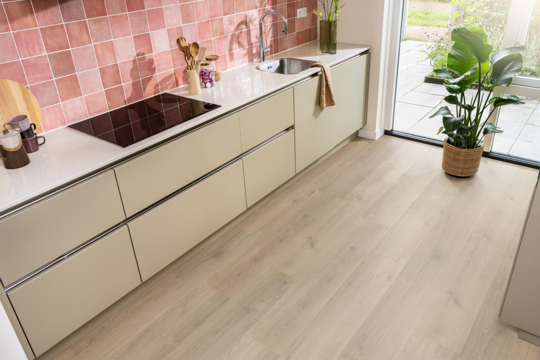 De Gigafloor Forest Hills laminaatvloer brengt met brede planken van 1286×241 mm en een robuuste allover-structuur een krachtige uitstraling in huis. Dankzij de waterbestendigheid is deze vloer geschikt voor badkamer, keuken en bijkeuken. Beschikbaar in acht moderne eikenkleuren voor veelzijdige styling.